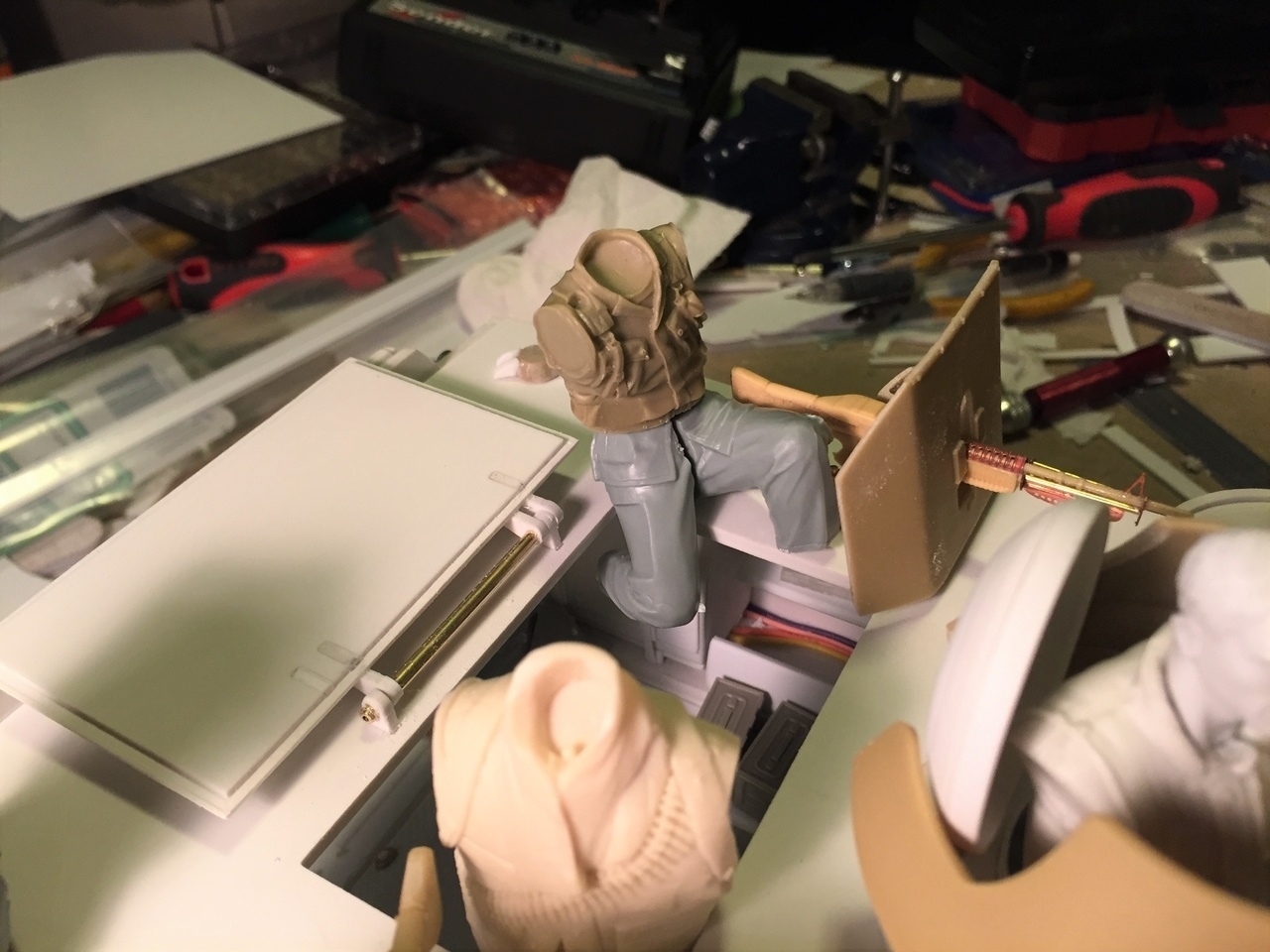 Here are the some pictures of the crew arrangement for planning purposes. It will obviously take a lot of efforts to modify the figures. The painting, with a lot of flesh exposed, will also be complicated and risky. The biggest building challenge will be teaming the PMC torso with the Dragon legs in a natural position. This is the only one that I am not sure of the result.