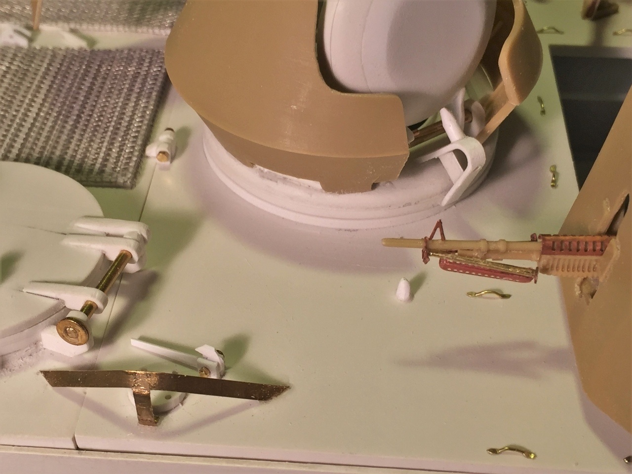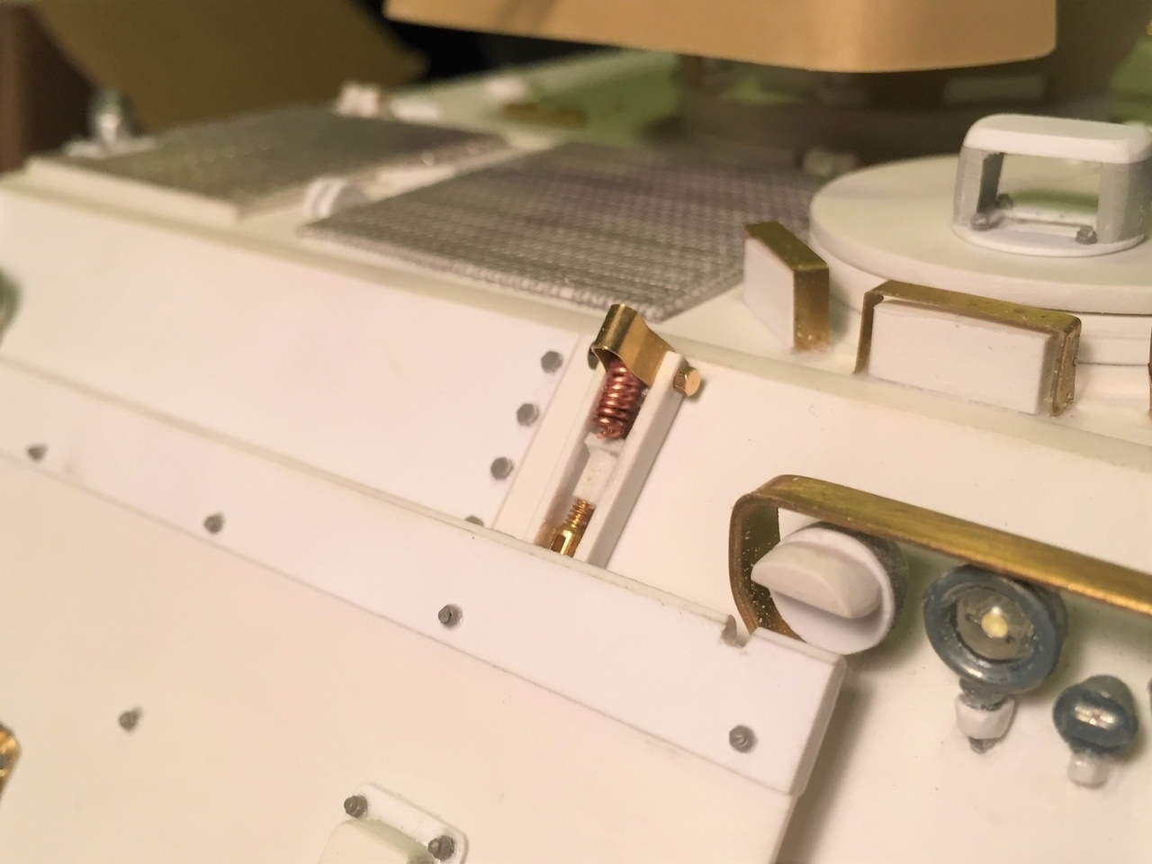 This is the antenna guard and locking mechanism for the driver's hatch. The guard front leg is not glued so that the roof can be opened separately.