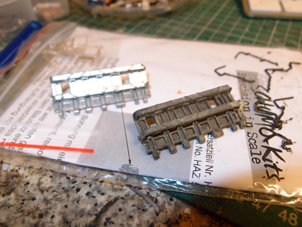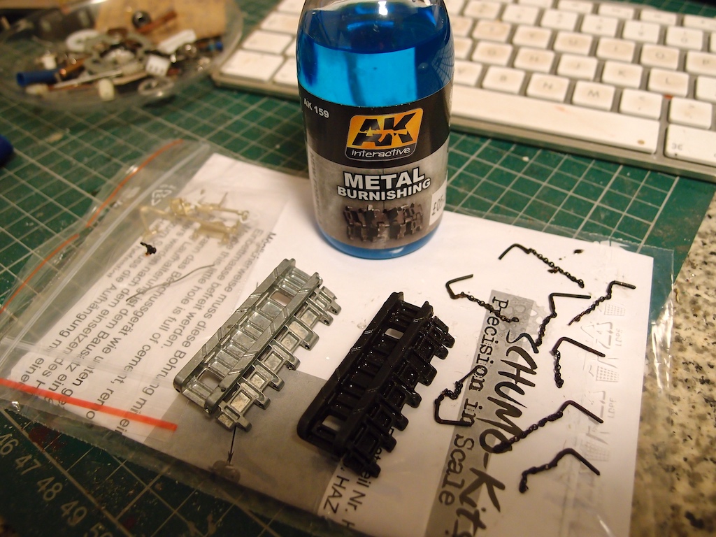 Trying out AK burnishing fluid on some brass and KT impact track links . Result