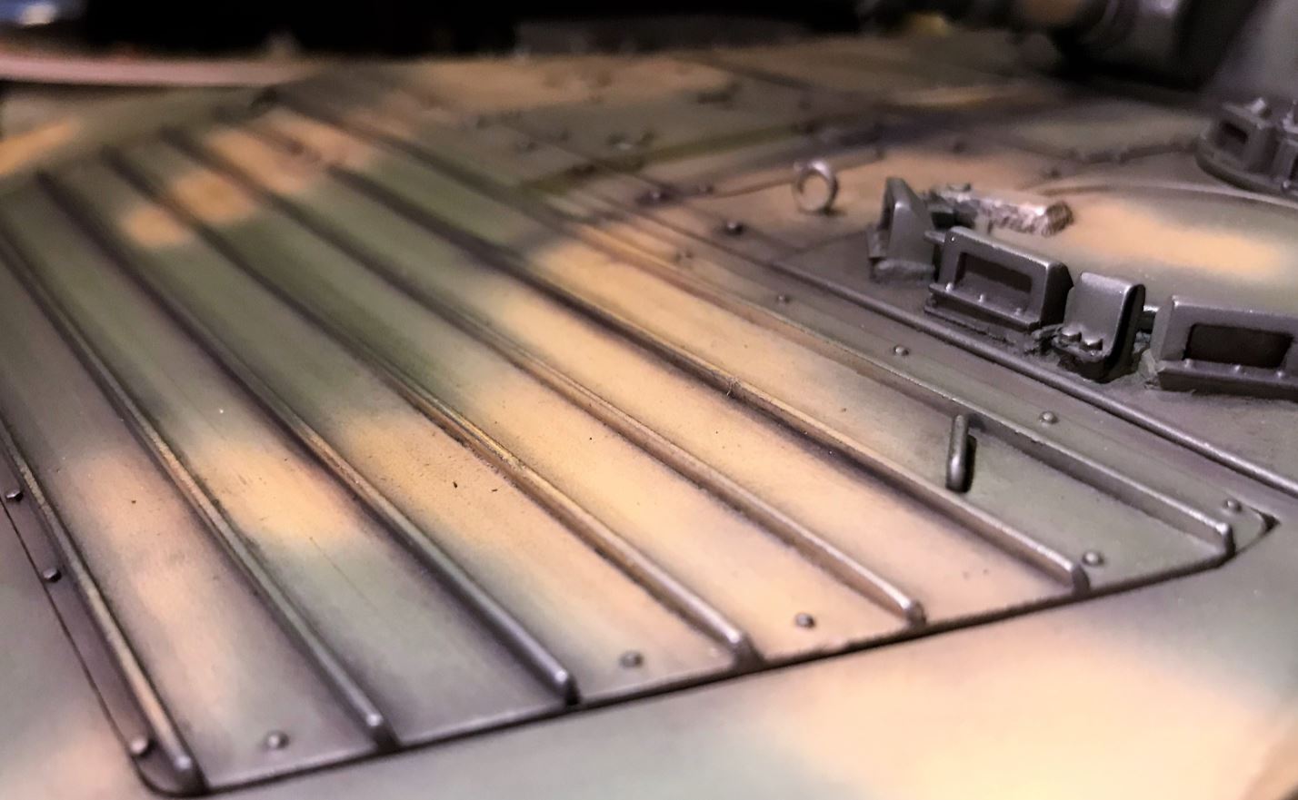 The camo is applied with a mixture of Tamiya Desert sand and Khaki acrylics,