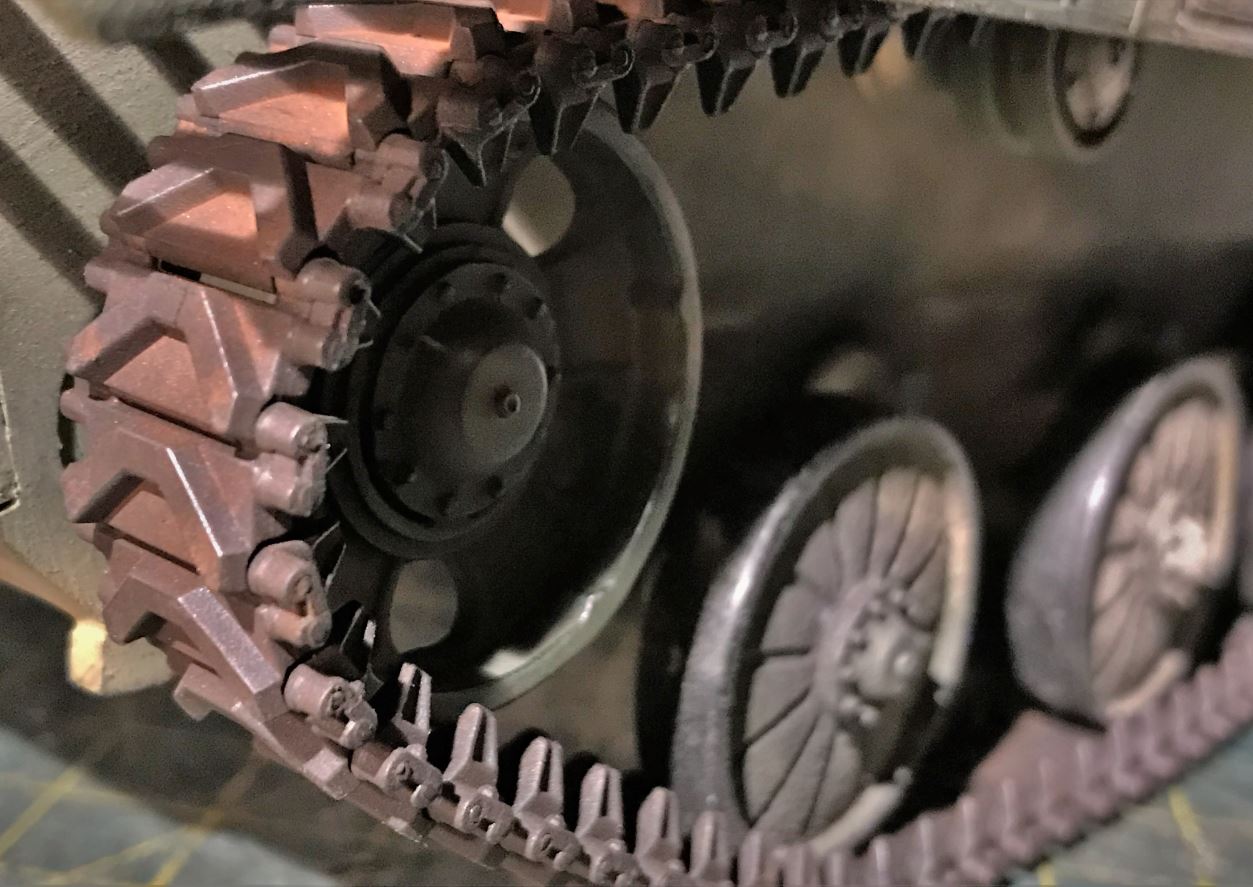 The 1/24 scale Sherman VS hard track are looking good. Although the chevron pattern is not authentic, there are few alternatives at this time. I am guessing that the upcoming Classy Hobby M5 Stuart in 1/16 scale could be an option for tracks and sprockets.