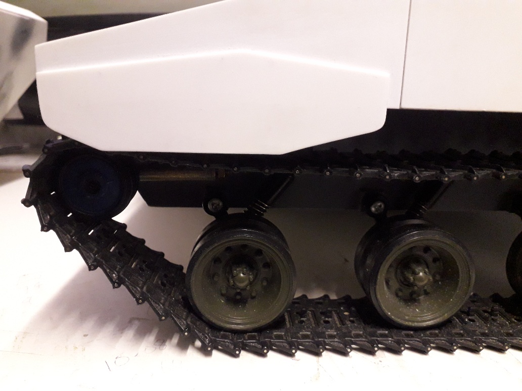 Still have to make the drivers vision ports and rear lights plus some other do dads but its getting there, tried out the running gear with an old heng long 2.4 MFU and it ran wonderfully so very pleased with that, just got side tracked slightly with another scratch built in 1/11 scale...yep they are getting bigger lol, more on that at a later date if any intetest later on