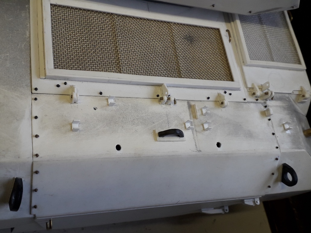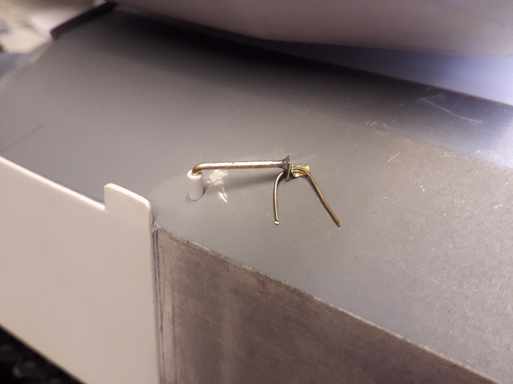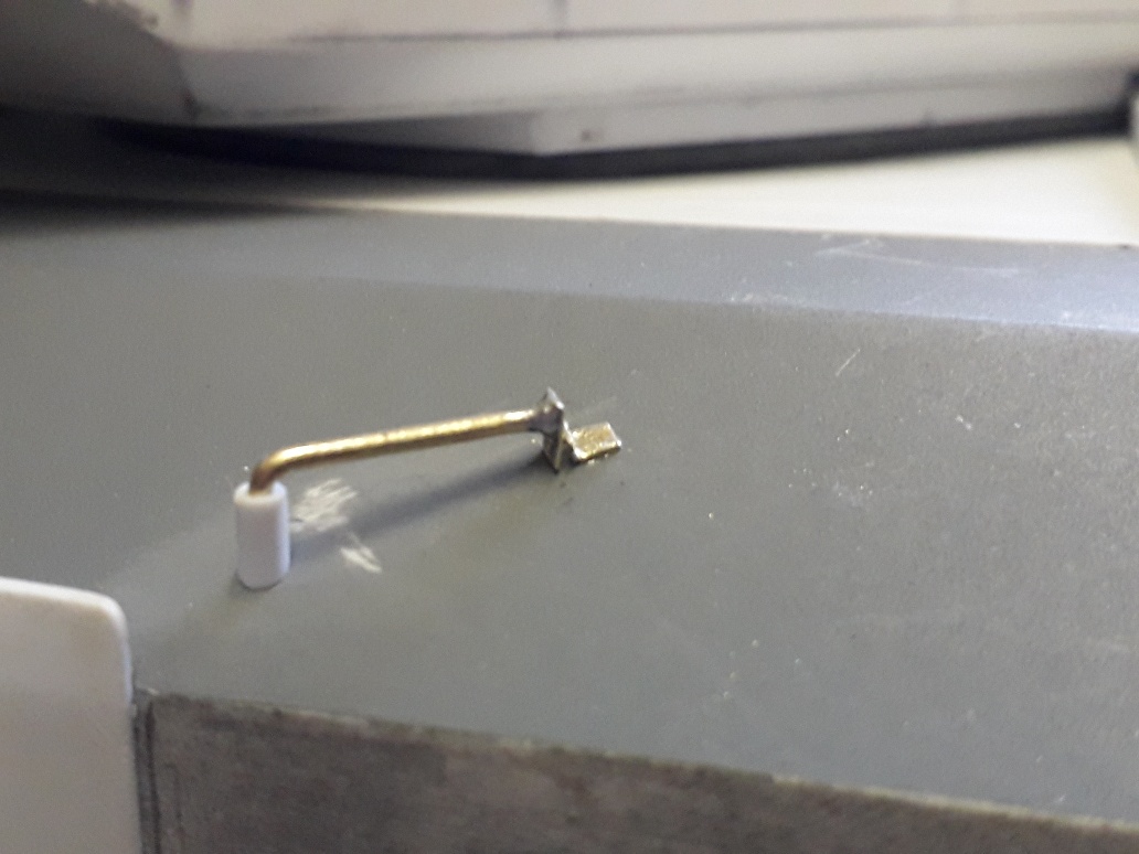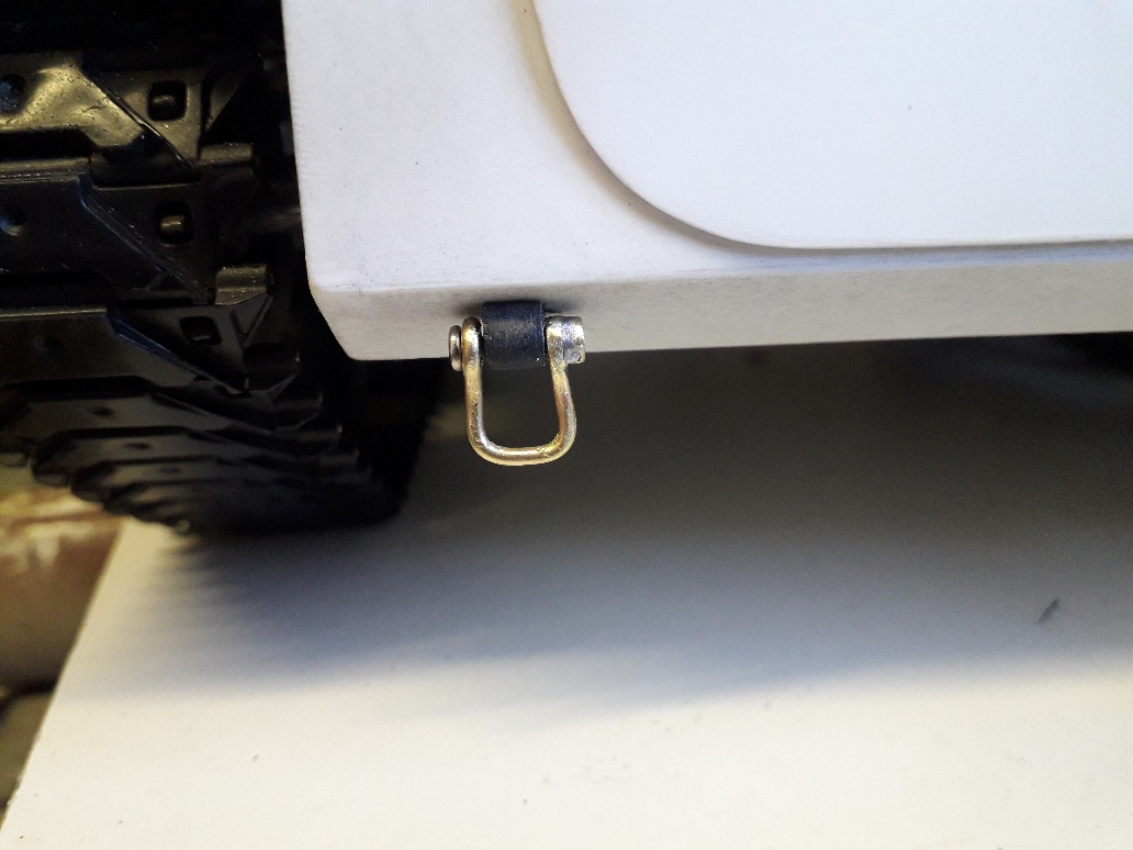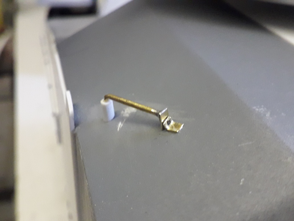 An external hull side door opening handle added to left side of hull deck ( above door) and will be fitted with a padlock when made, hence the brass rod passing through handle and hull mount.