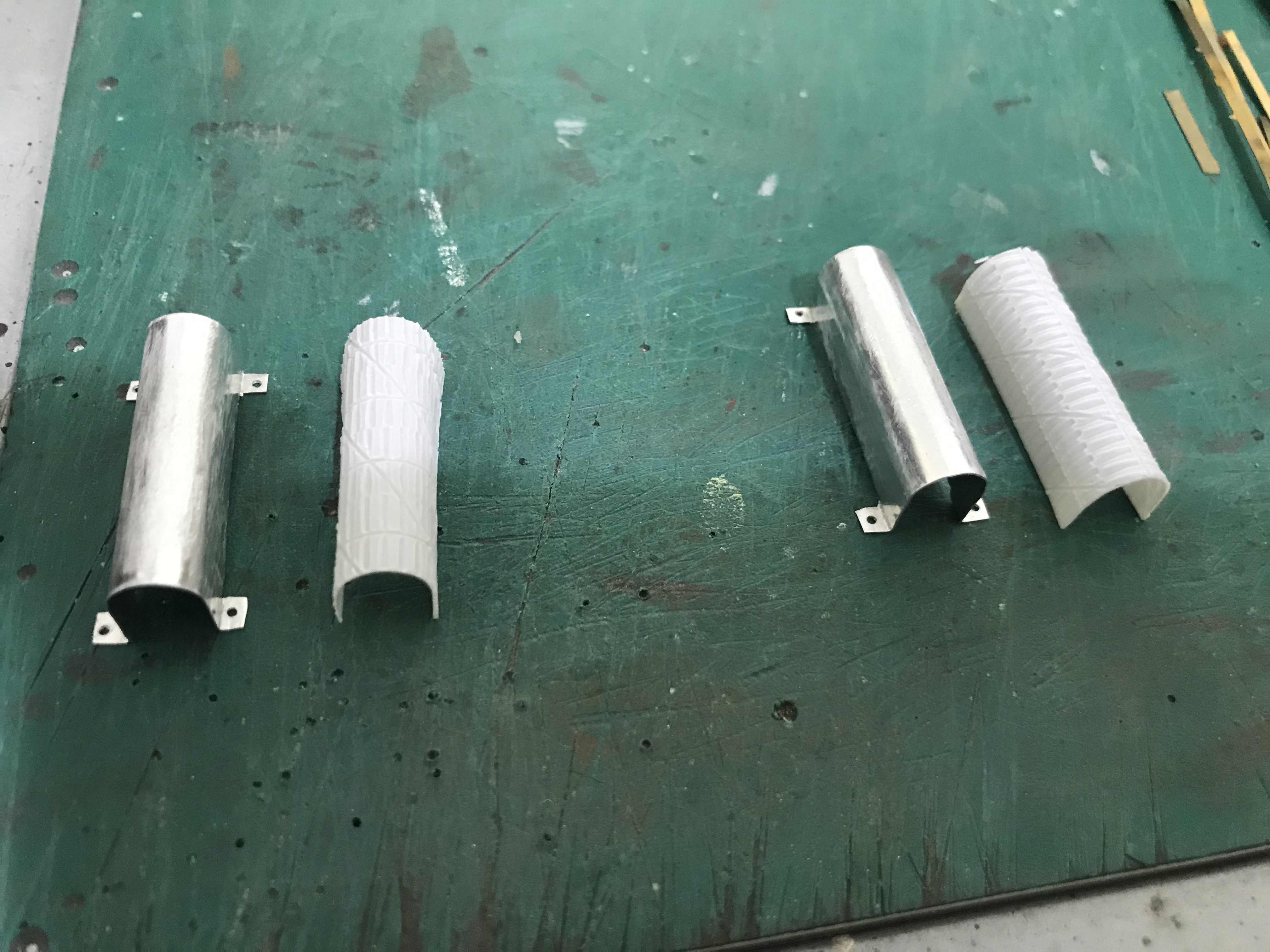 Dipping the zimmerit patch in boiling water then quickly placing over the alloy forms retained the curved shape well.