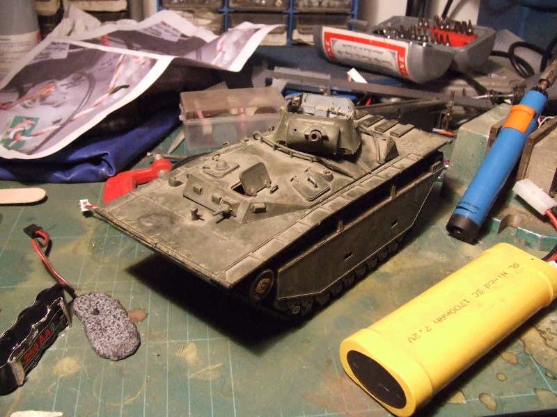 DIgging through my stuff and I found the source of my obsession with LVT's. An old Nitto kit I built when I was about 14 years old (only 30 years ago !!). Well I had this idea around that time of how wonderful it would be if 1/35th models could be radio controlled......few years on and the LVT (A)1 of this thread came about. Found a few spare bits and saw a video on youtube of a chap who made the Nitto kit RC so, well I had a pop...... this is the original 30 year old model with new tracks on it. Serving as a prototype for an unbuilt kit I have of the same. IT ONLY BLOODY WORKS and of course it floats