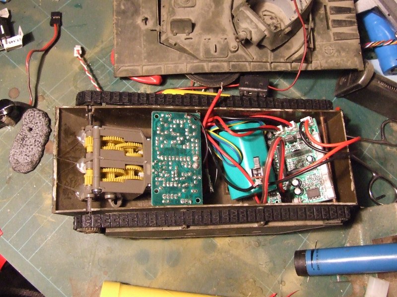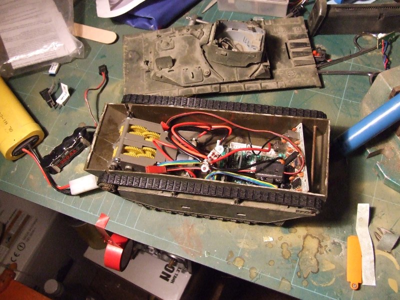 Tamiya Twin Gear box kit (very usefull bit of gear that) Heng Long RC gear, and a 4.8 NIMH, Rx battery which works pretty well.