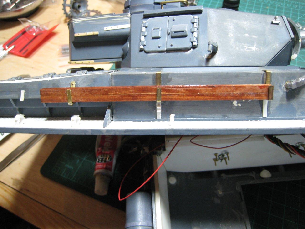 -The bolt mount was made using 2-mm styrene rod with a .8-mm hole drilled for the bolt. I sank the styrene rod into the hull side by 2-3 mm.