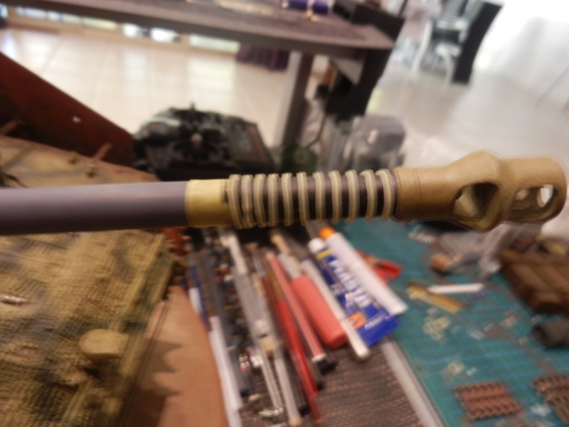 This battle hardened STuG has had a new barrel fitted which is standard enamel grey as they were delivered. I used small rubber bands left over from one of the wifes nieces braces long since removed to mask off the rings.