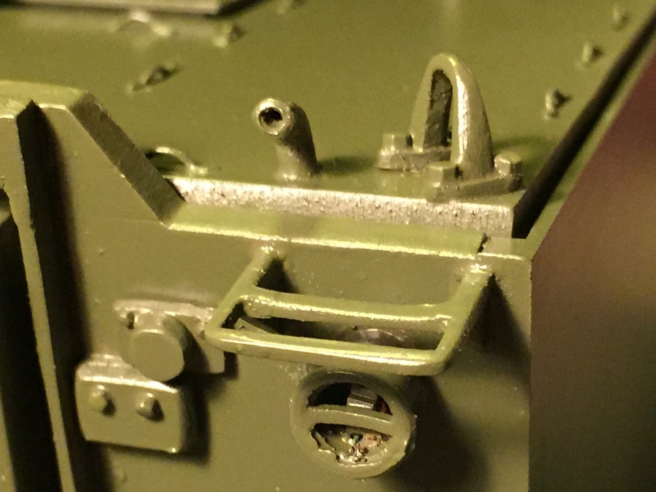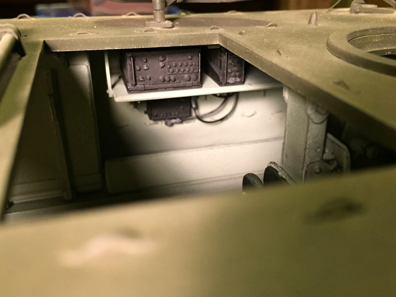 The Shapeways AN/VRC-12 and VIC-1 Intercom sets are very nicely detailed but expensive, so this is a luxury. All they require is the addition of the brass rod handles at the front. The sets are large and I have now US radio material for at least 2 more models. There is no way I could have scratch built these, not to this exquisite level. The sets and the wiring will next be added to the interior and will add a lot of value.