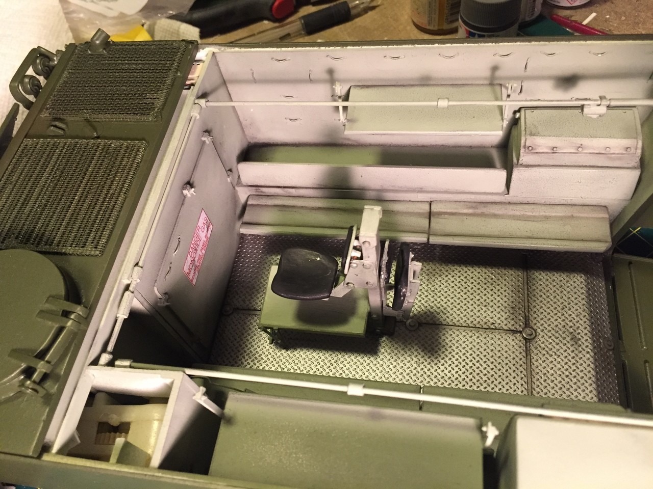 Looks like there will never be enough mud to put on, or a mess to create inside. However, got to be realistic also that the vehicle is in my house, not in Vietnam. Don't want to leave a trail of mud on the floor, and it has to look good... Next post will show the model after my first attempt at mudding it, a bit...