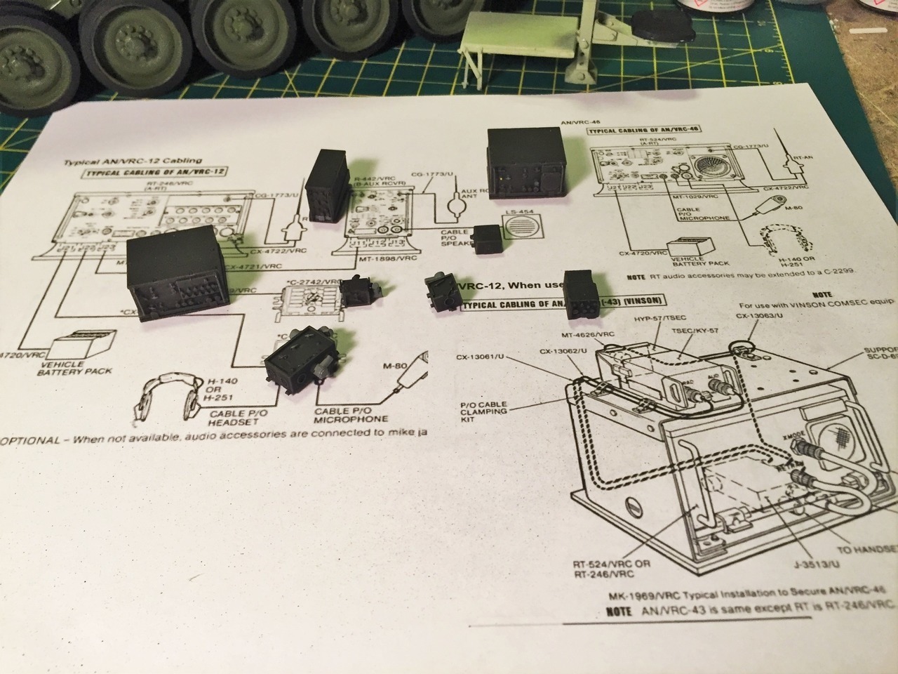 I prepared the radios and intercom sets, and determine the wiring arrangement. I found help on the web at http://www.radionerds.com/index.php/AN/VRC-12