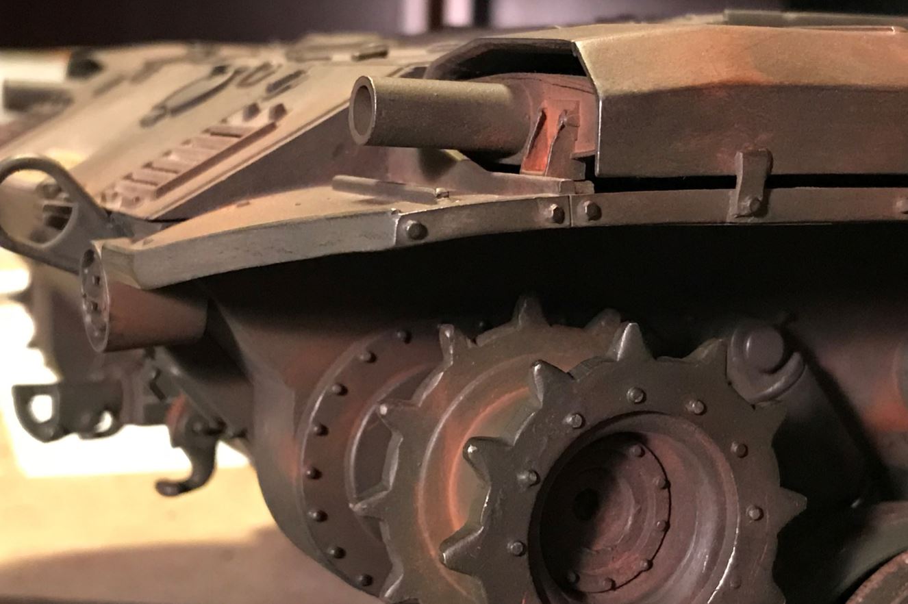 If I could offer a couple of suggestions...the headlights should be warm white (yellowish) given their era and the rear end needs stiffer springs. It might be the angle, but it looks like the rear end is squatting, which is normal for this tank when it has steel gearboxes.