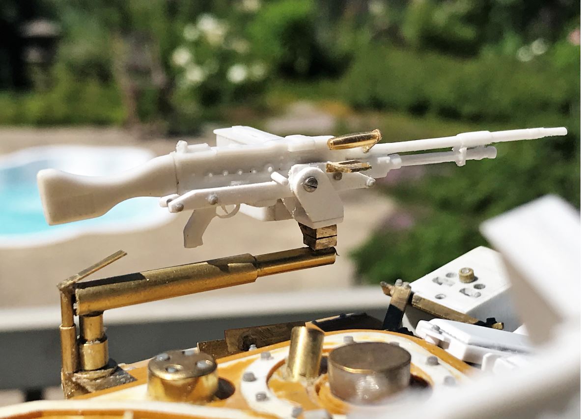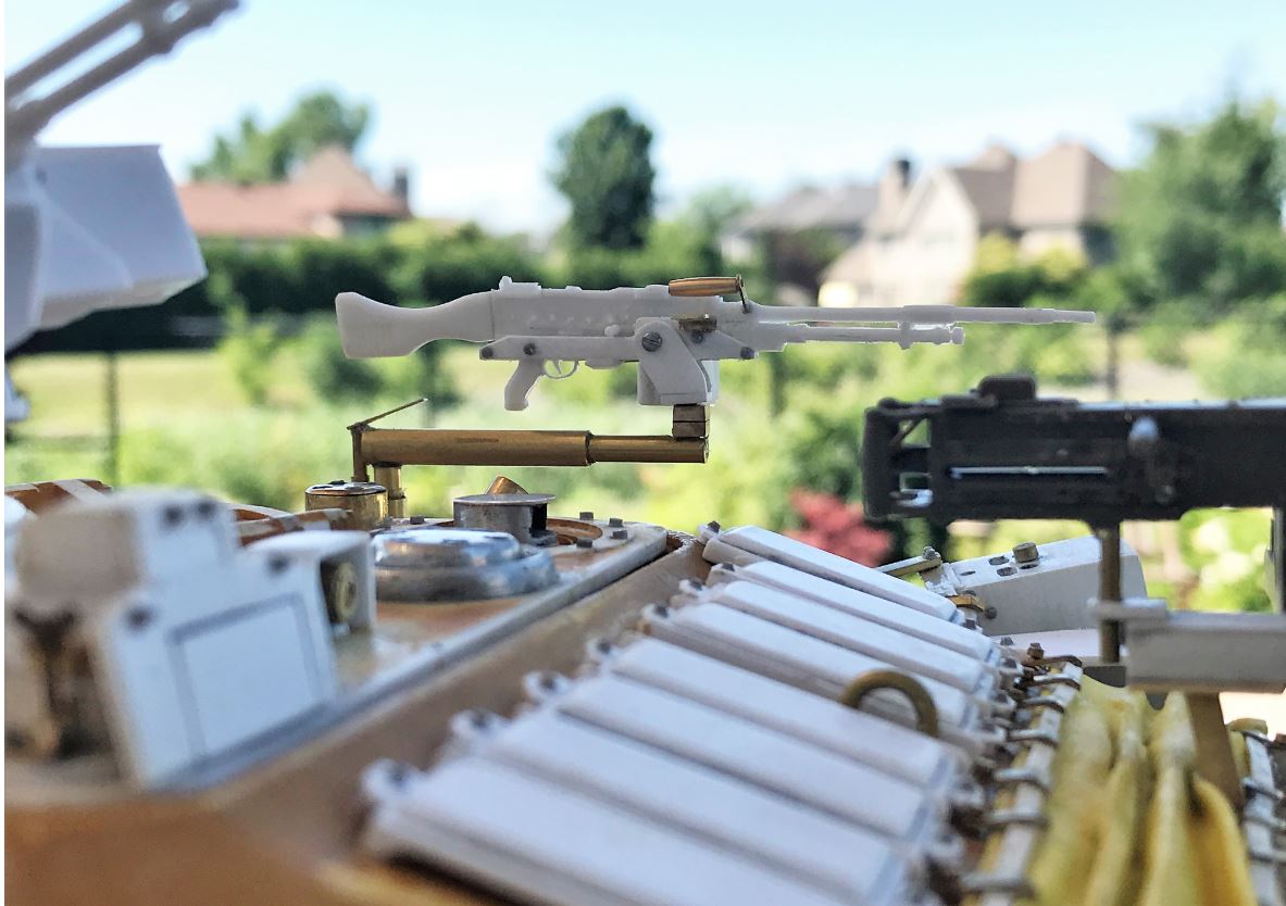 Views of the loader's machine gun mount, totally scratch built. Only the SOL Models machine gun itself and the ammo box were used.