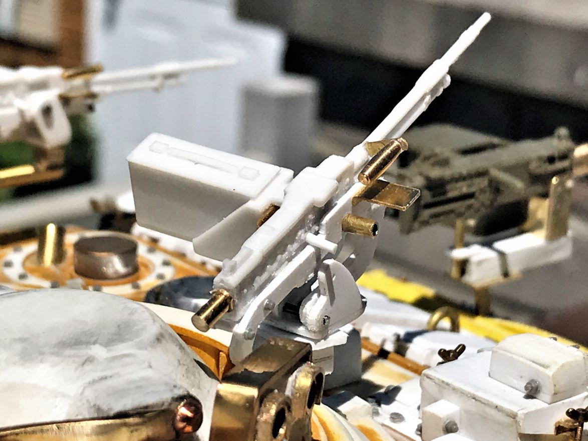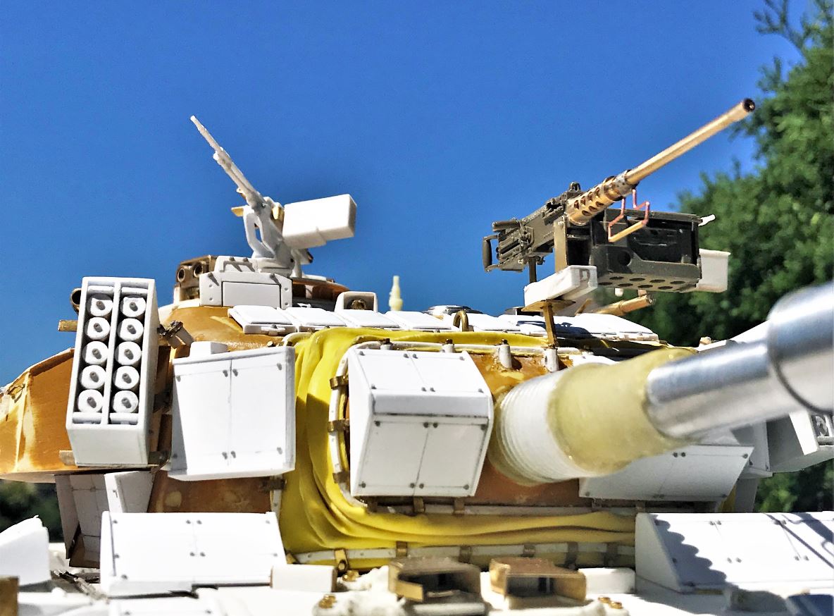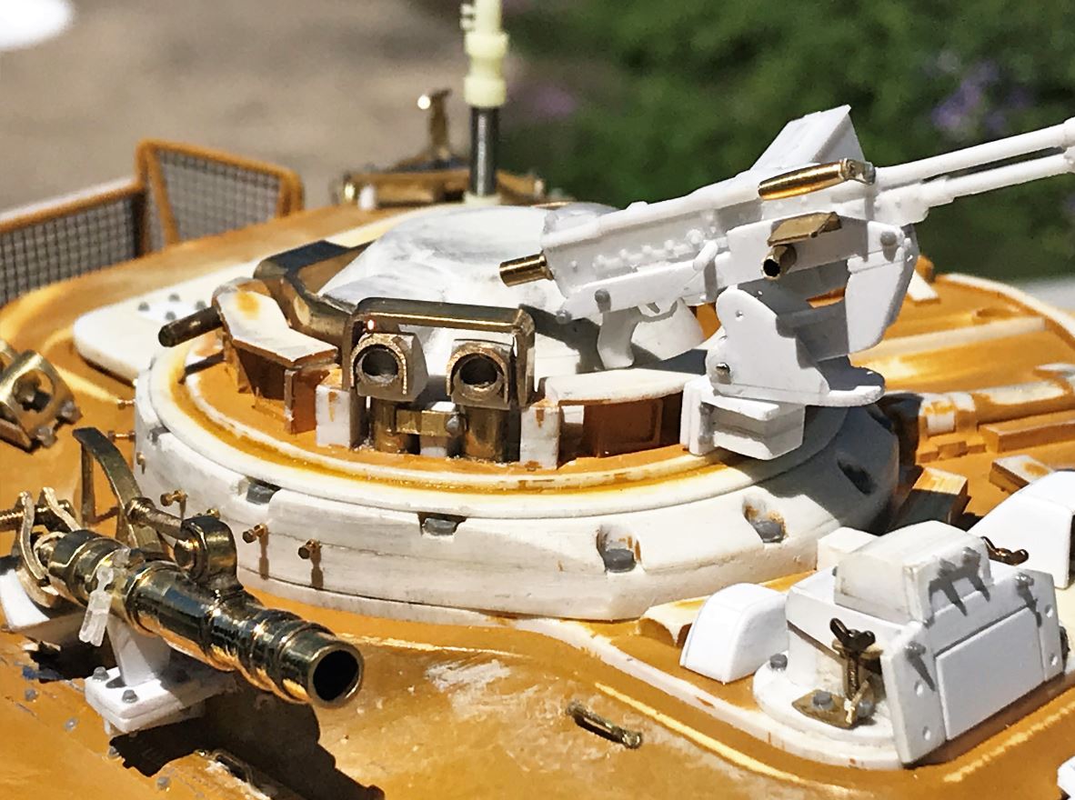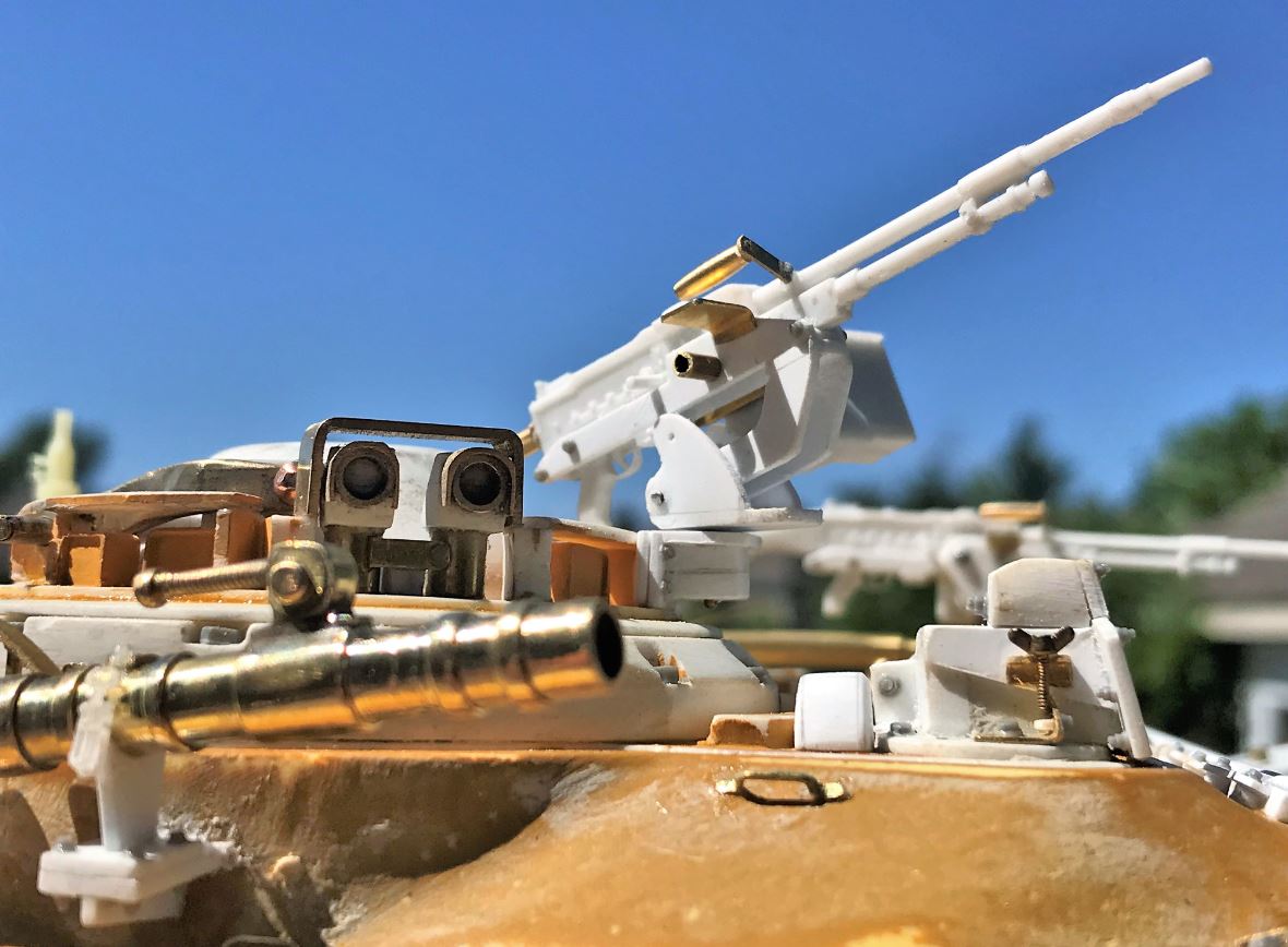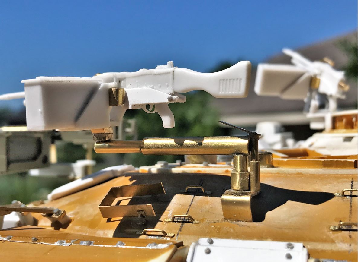 Good close up pictures of the sho't kal turret armament fully installed are difficult to find. The mounts for the 2 FN Mag machine guns are also different. As for the .50 cal M2 on top of the mantlet, I mostly had to rely on the AFV Club kit and a few fuzzy pictures from far away, which is risky.