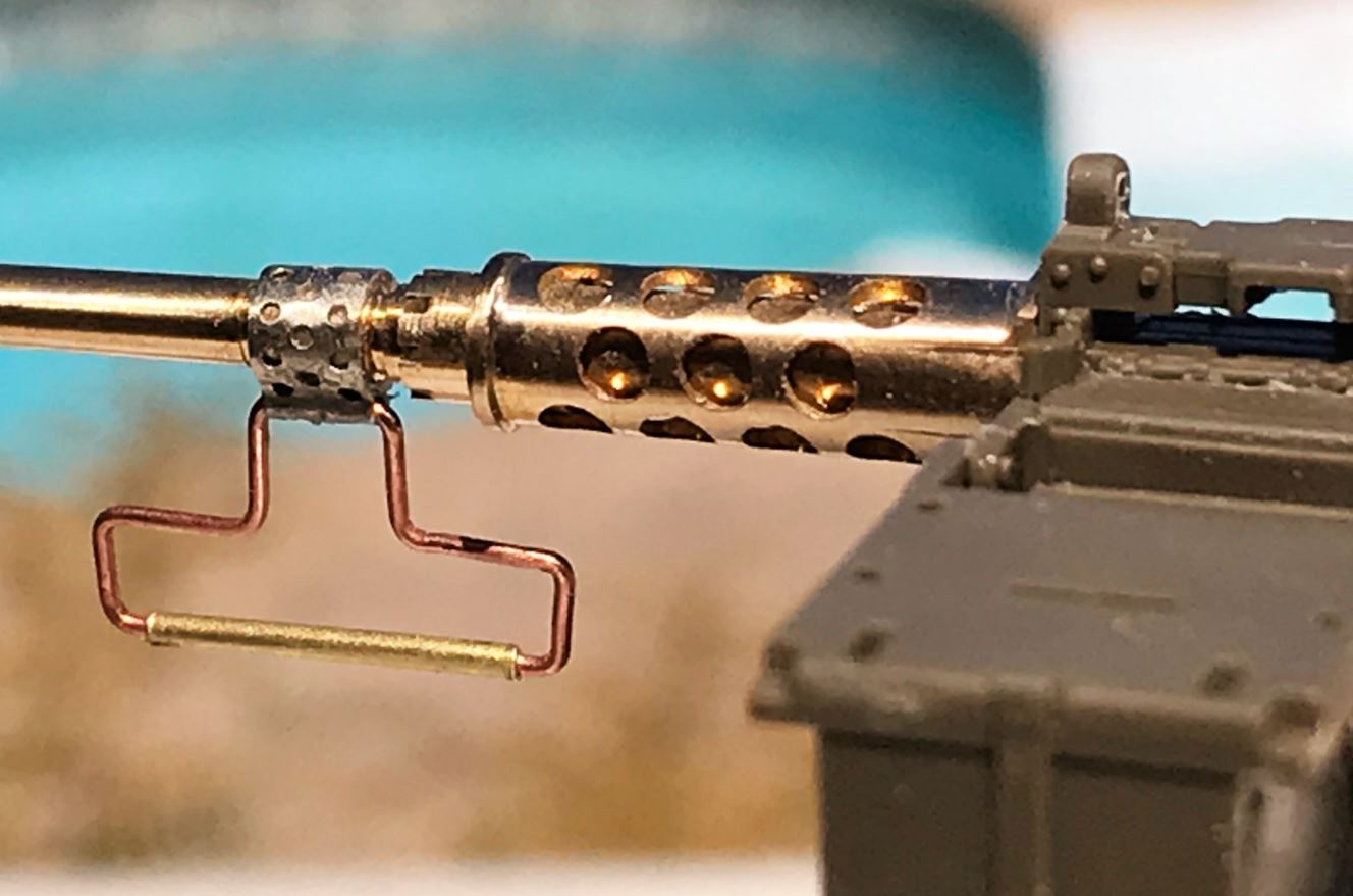 As usual, the M2 was given a ABER barrel and sleeve. But I used some of the ABER parts on the FN MAG instead, such as the handles and recoil tube for the commander's MG.