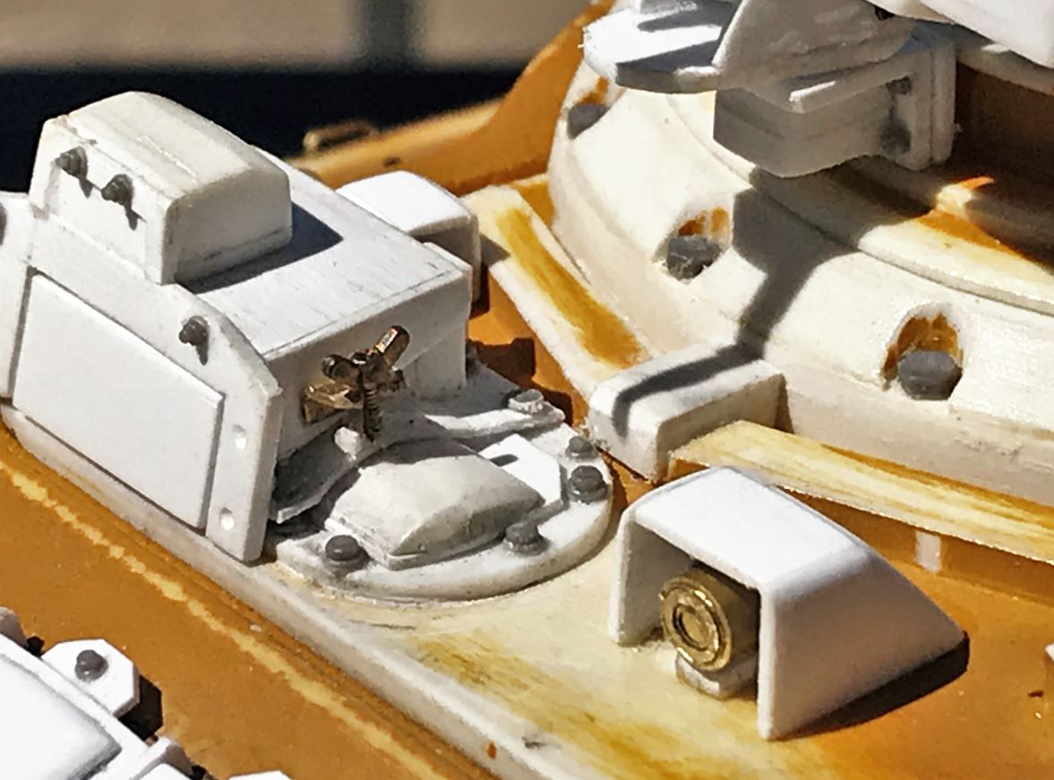 I found the AFV_Model cast handles were not of the right type and size for the Centurion. I therefore removed them and redit all the handles with 0.5mm brass rods.