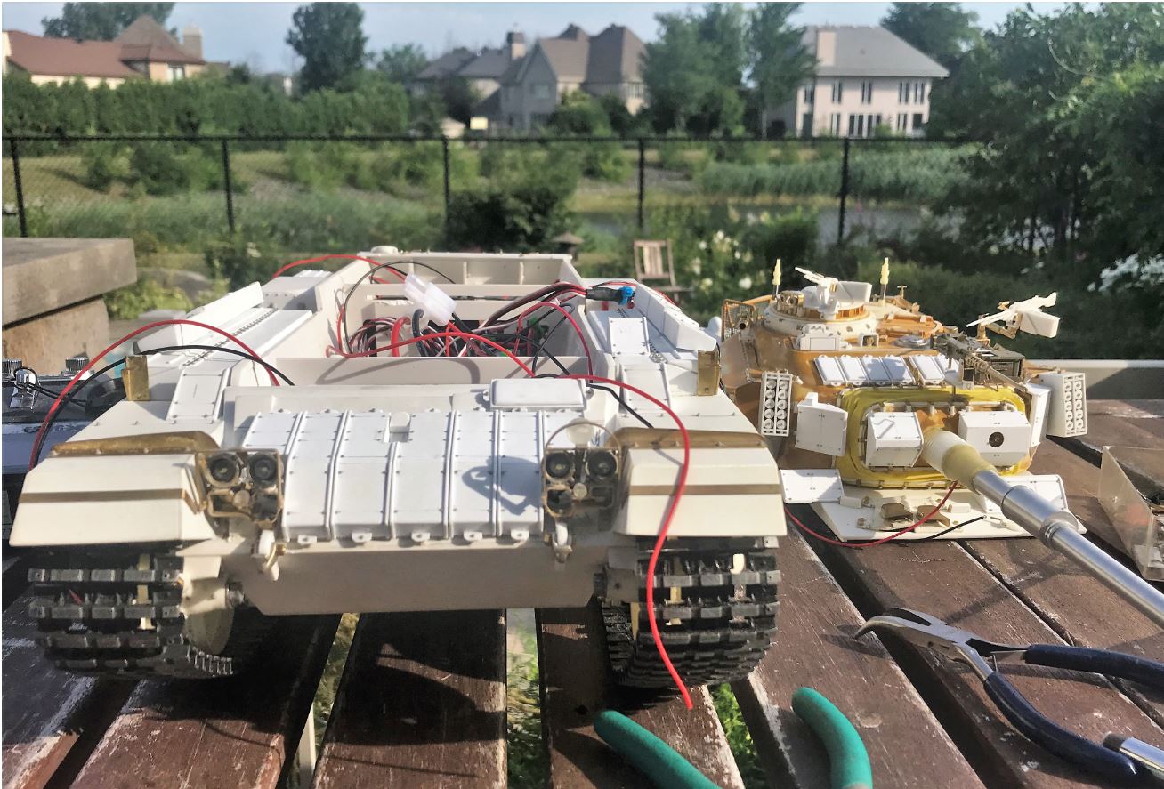 The Ludwigs Centurions offers unparalleled access to hull and turret electronics. The hull top just slides forward and then unlocks to be removed. After having done M113, Nashorn, M7 priest, BMP, Marder, V100, some with interior details and not much room for electronics, this Centurion is a huge tank.