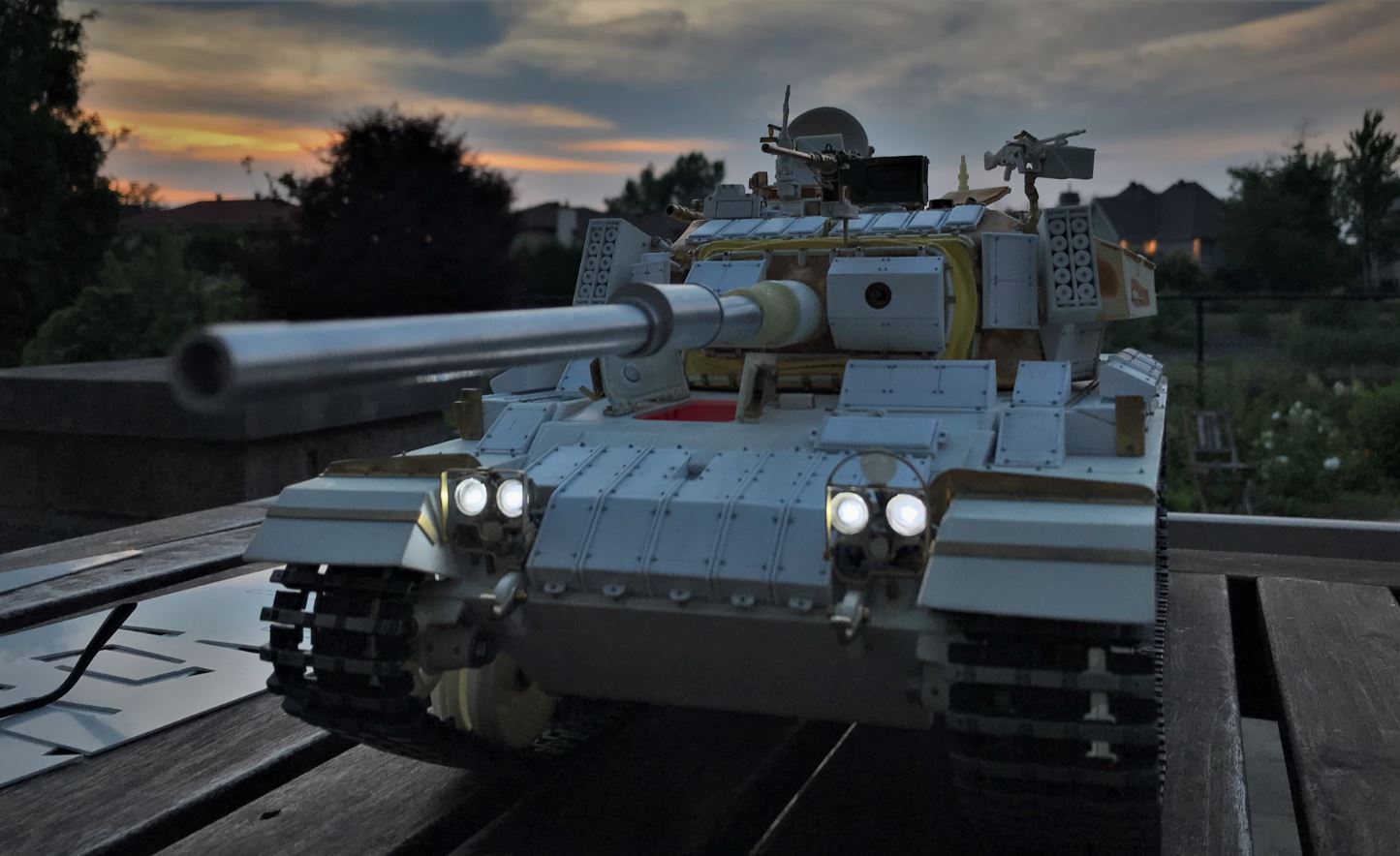 The turret coax machine gun flash and red interior lighting are installed at the same time.