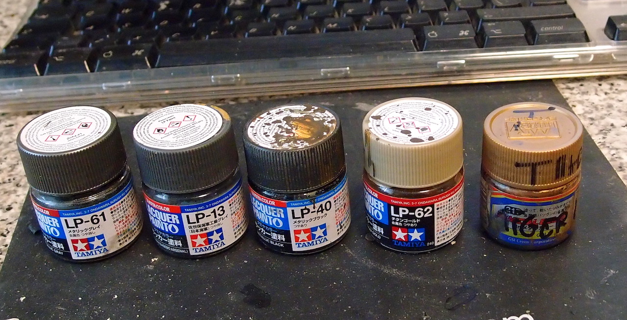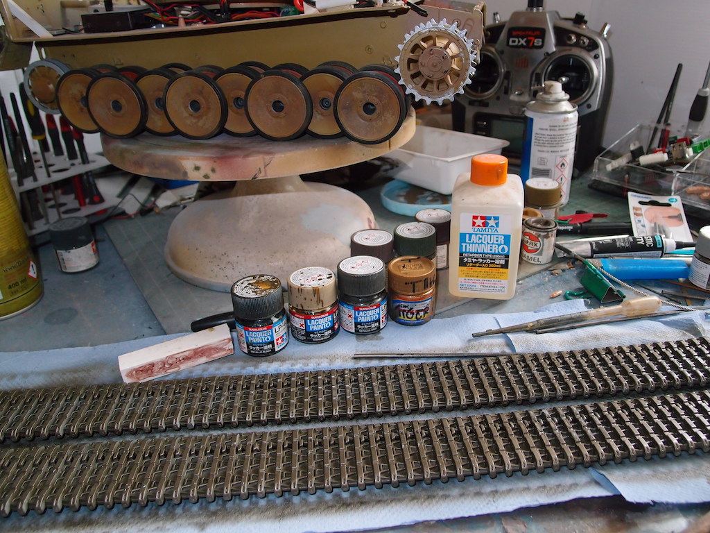 Herman here are the colours , just kept on mixing until i had a colour a little darker in the bottle. Tamiya LP 61, LP 13, LP 40, LP 62 and MR hobby 217. Should buy a few brown and green Lacquer ones to try other mixes for tracks. Some say that they are tougher than acrylics.
