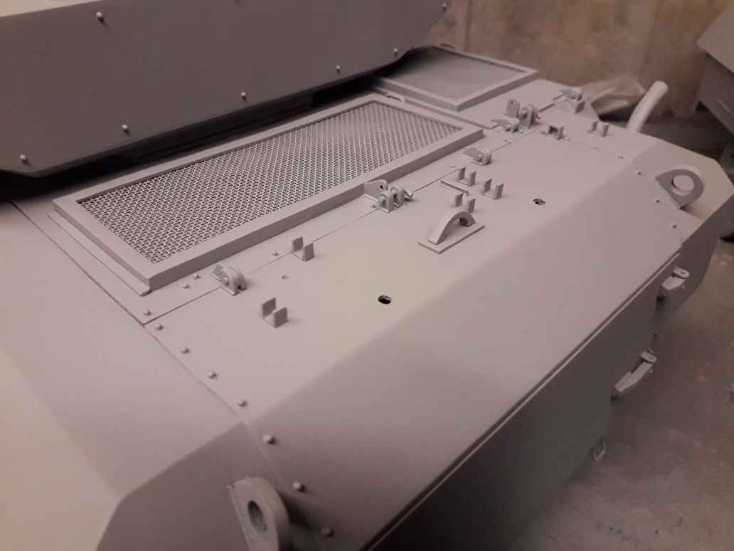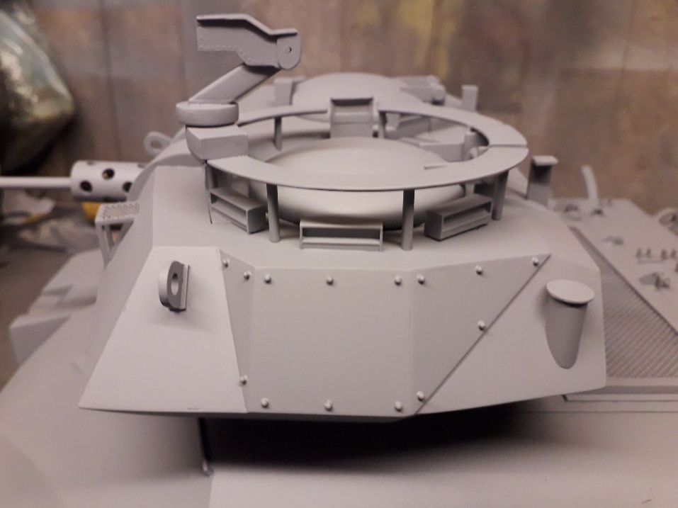 I finally got around to putting some primer on the hull and turret areas mainly to protect the plasti card from U/V rays and also to highlight any imperfections, fortunately there were only a few ( well to me anyhow ).