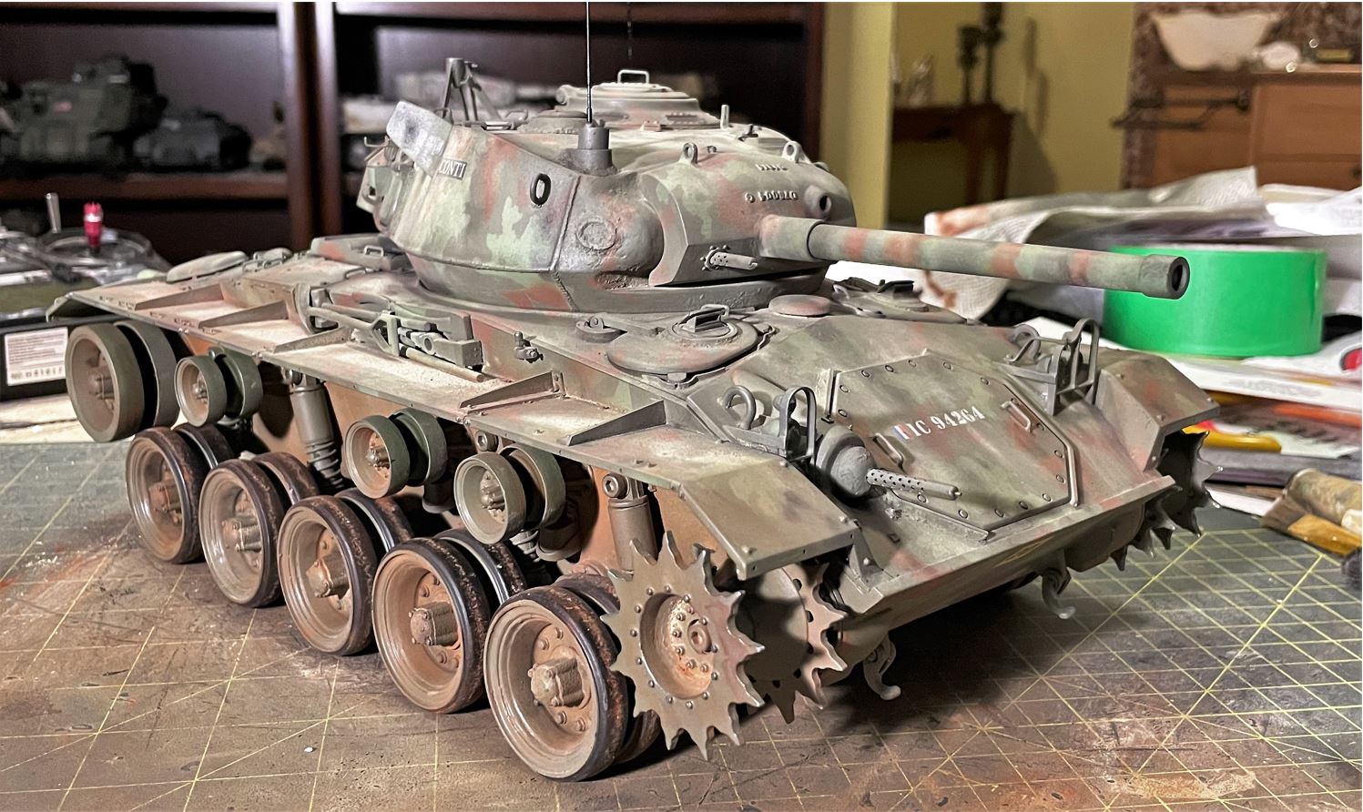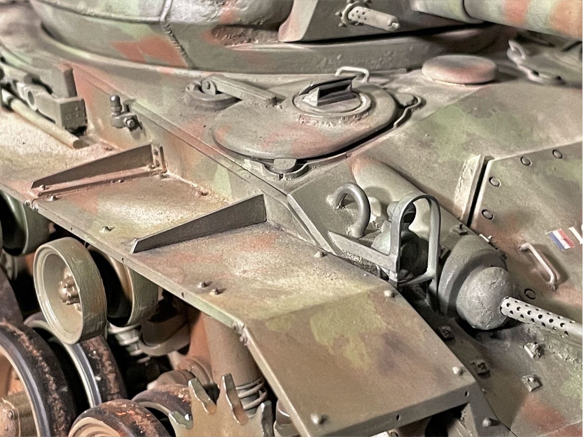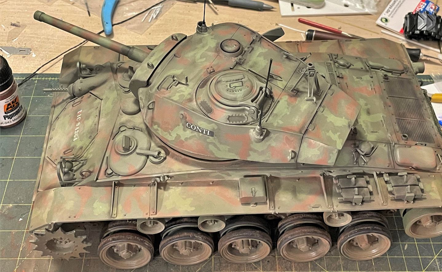 Thanks, I think so. Its an unusual and difficult hand painted field camo to reproduce in 1/16. Very risky to ruin the model. The pigments are smoothing the camo lines and making it look worn out, a must for this tank. Leaving it Olive drab would have been inaccurate and a bit boring too. So far, its a go.
