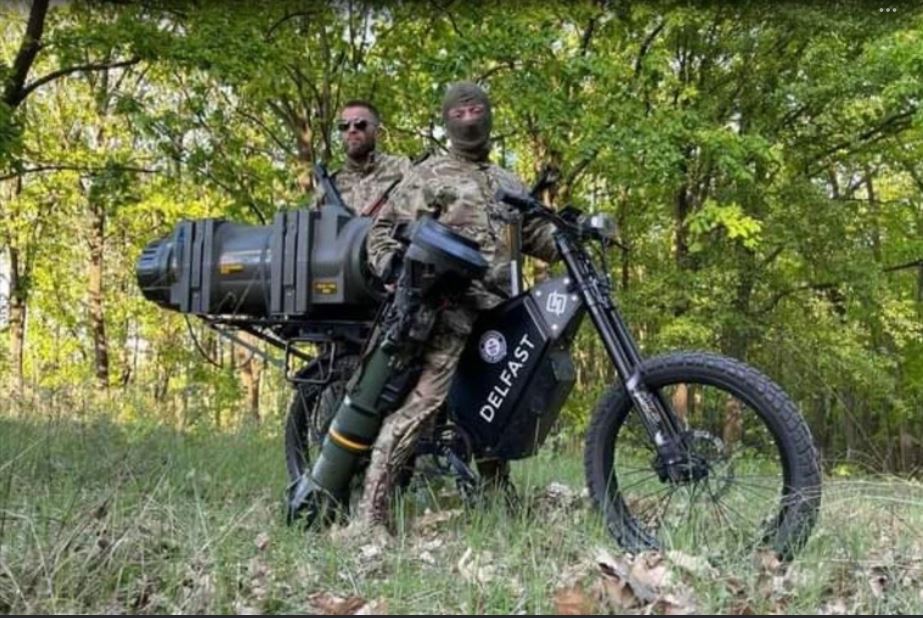 I have to admit there must be some excitement going to the front like this with an NLAW in the back. These electric bikes are cool and silent.