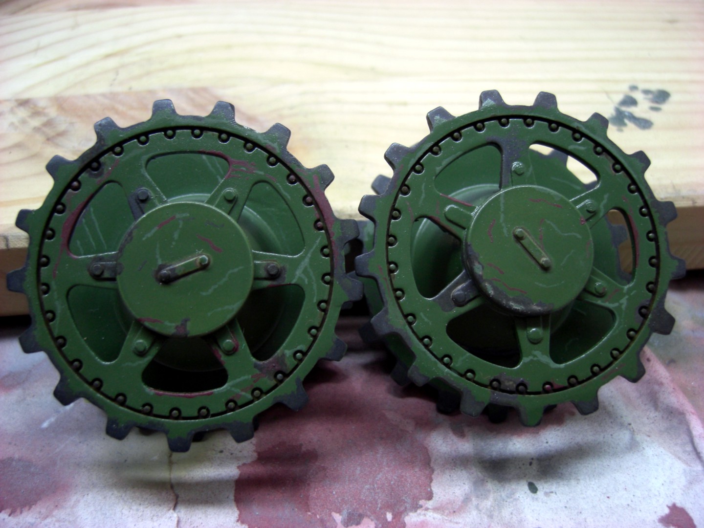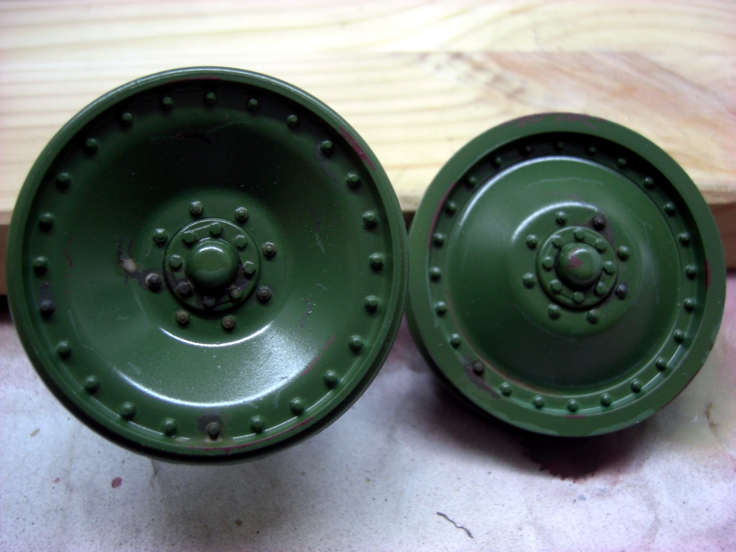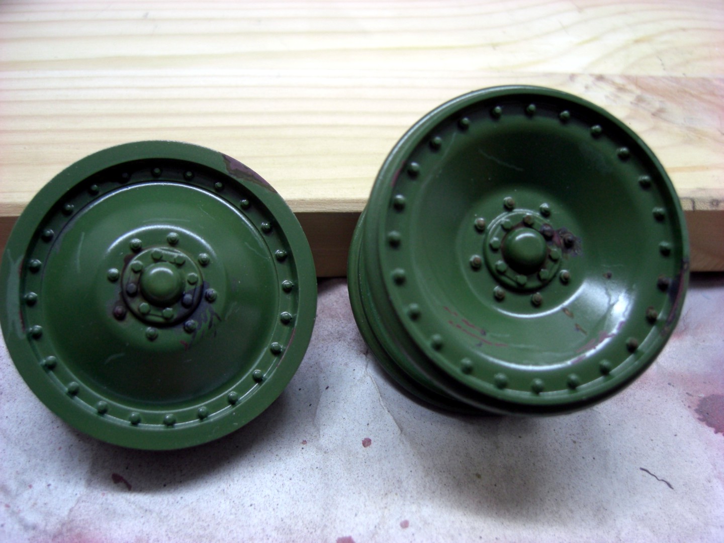 I started like at my road wheels with olive green, brightened with 10 per cent white.