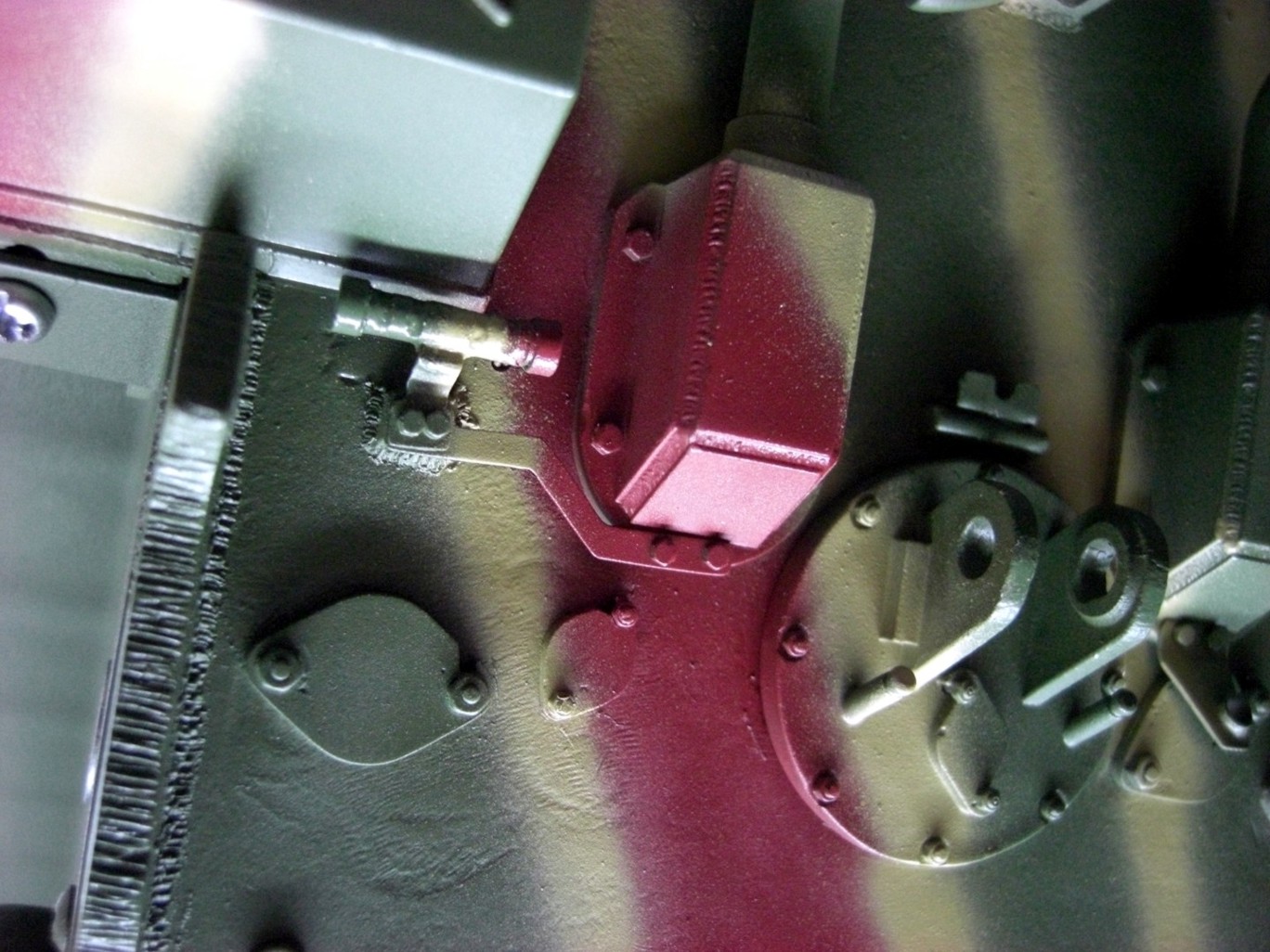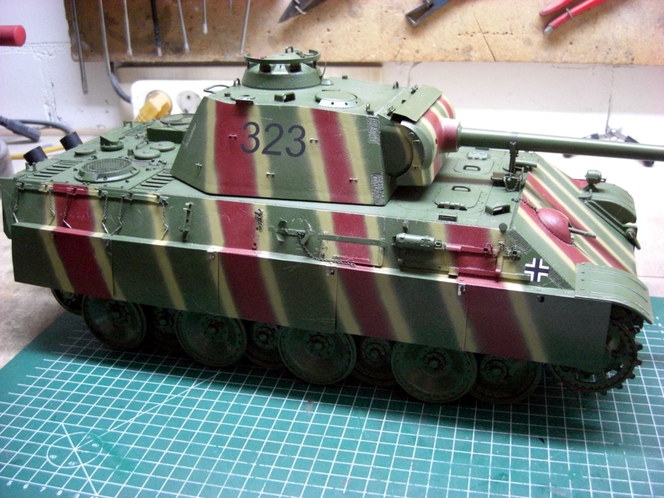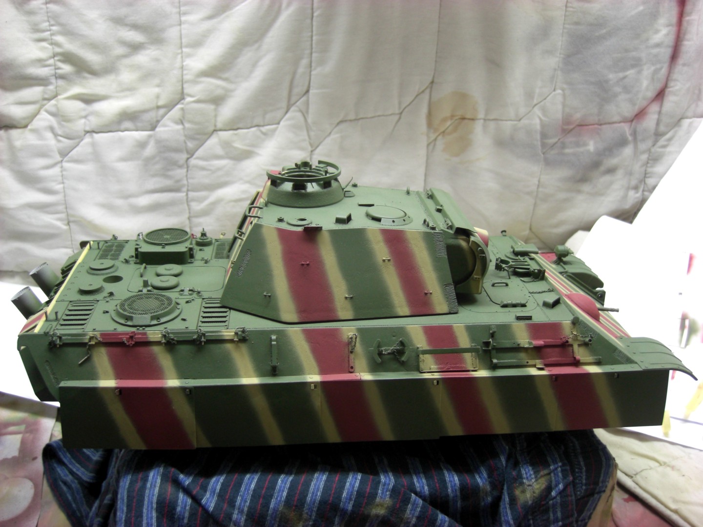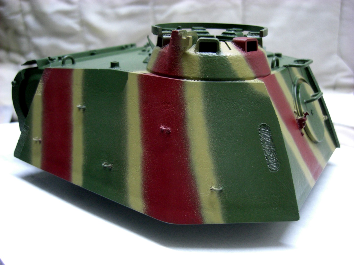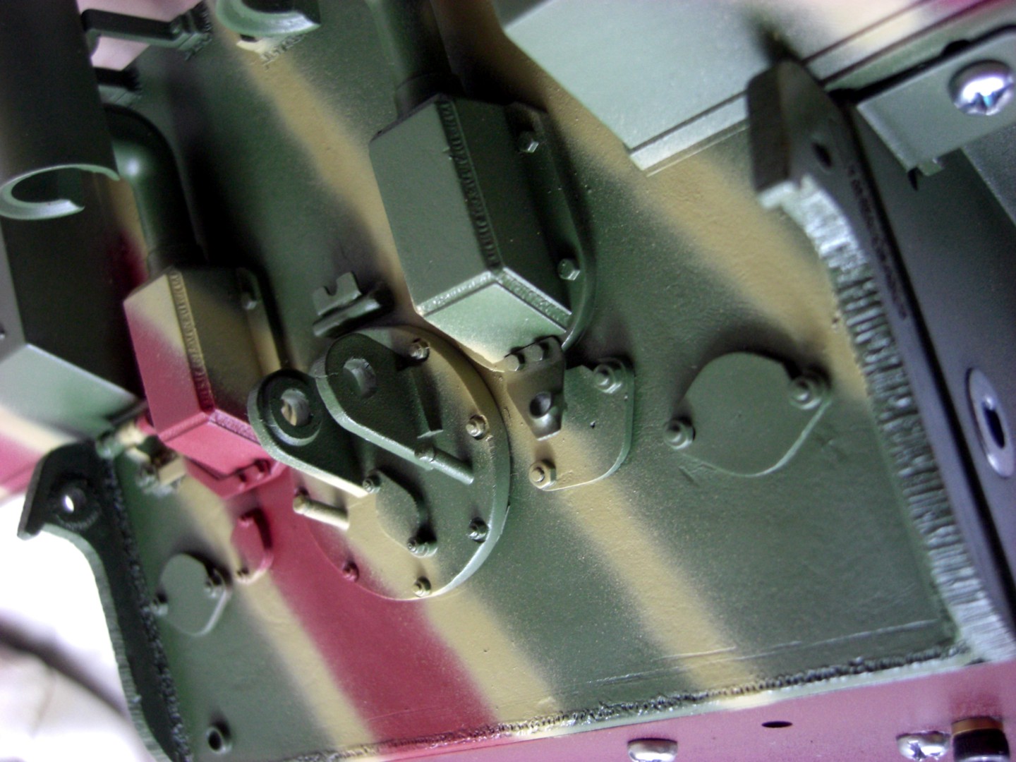 Soon it will go on and it will be exciting; coating the camouflage pattern on the tank…