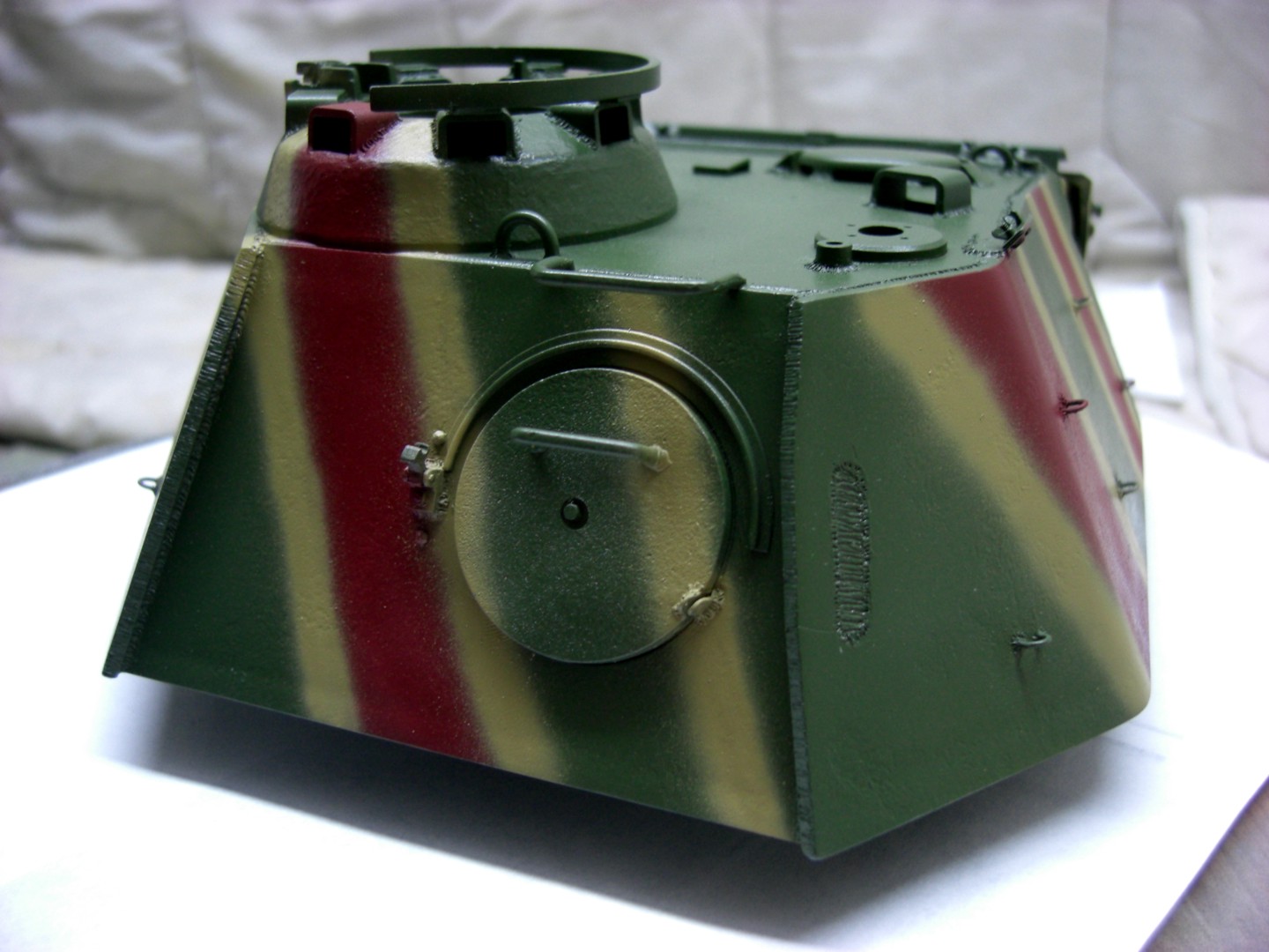 The rear plate and the upper hull is in this time mounted to the lower hull; the turret later then also. The gun barrel is still missing because it will get no camouflage.