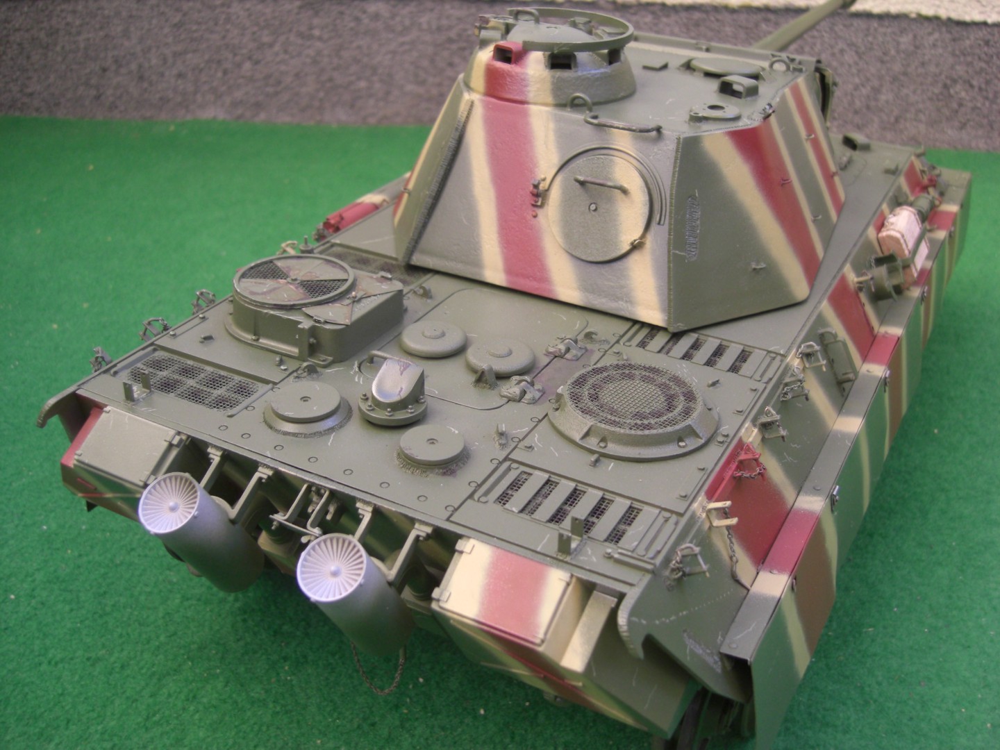 Here is a picture I discovered on the web. It is a panther rear stowage box they have found with the original camouflage paint still visible. As you can see it is very similar to your camouflage scheme.