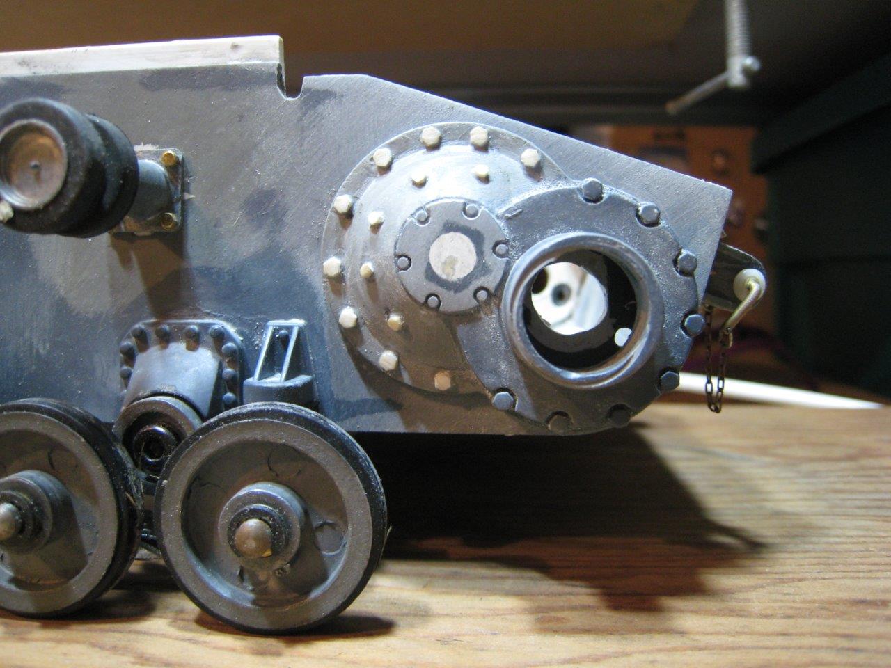 This whole process also gave me the opportunity to glue in the styrene plates that would reinforce the front hull sides. And, I used some of the extra Milliput to fill in some of the hack job that happened as I tried to find the right spot and height for the drive shafts.