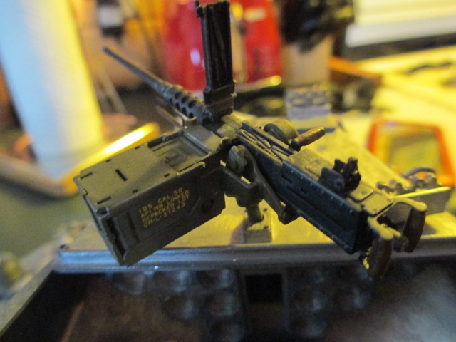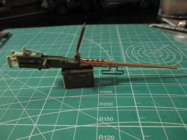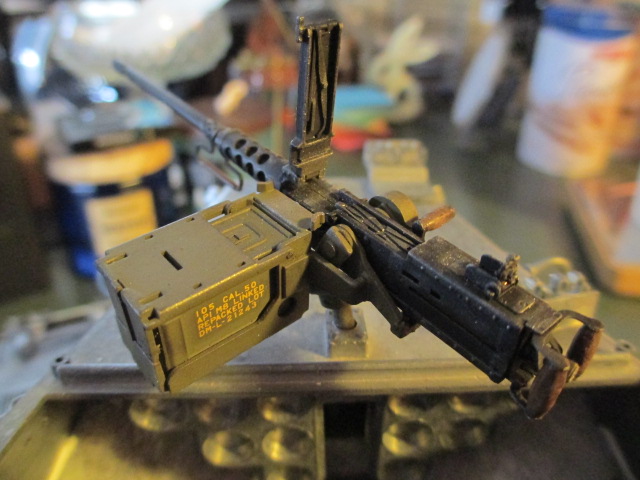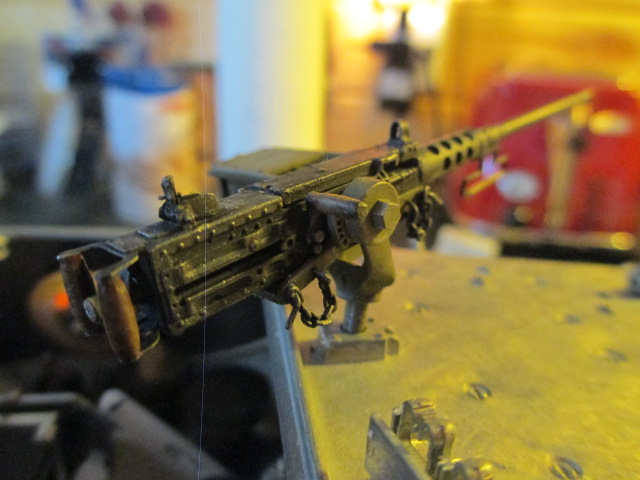 Nothing in the mail for the last couple of days. Casting about for something to do to the M36B1, I remembered Doc Phibes inspirational .50 cal. I pulled out the Tamiya kit and the ABER brass for it and spent a couple of afternoons working on it. Pics: