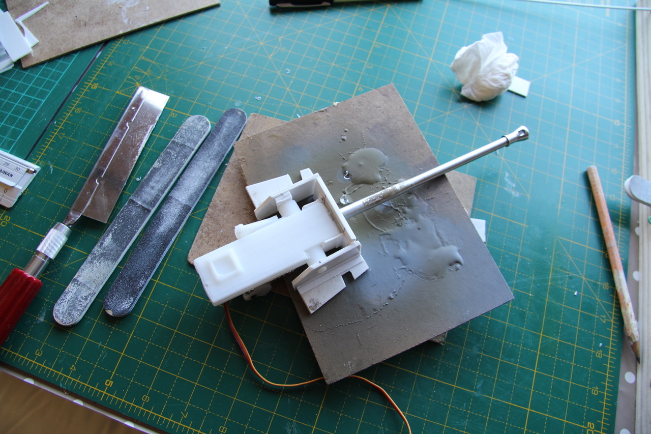So, I ripped out the Kit barrel pivots/fulcrums, and also found I needed to fabricate a new mantlet to cope with the offset, and the position of the barrel in elevation mode....