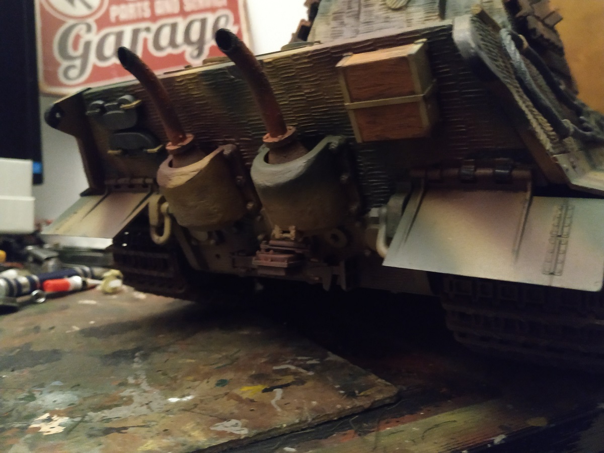 Yesterday, the labor's day was quite productive, I almost finished my king tiger too. I started it like three years ago. I will fit a net in the turret along the weekend too. I did a lot of job in the tank, zimmerit (I put and removed it three times) paint (painted and unpainted 7 times!!!) welding marks, cast texture where it needs it, working exhausts, and working with Open Panzer