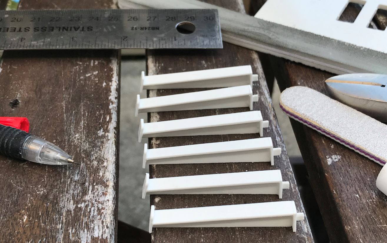 Ludwigs provides the skirts in one piece. They have the right shape but sadly full of positioning holes that need to be filled and polished.