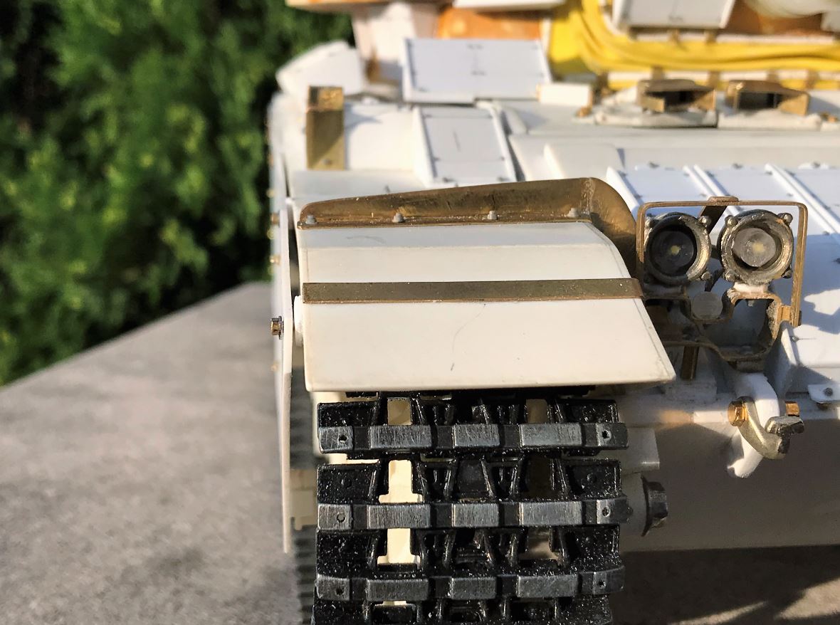 Notice the 8 small 1mm thick plates attached to the fenders side, this is where the skirts screws will go into, and also the position of the 3 struts on each sides. This is the last time you see the Sho't kal without its skirts.