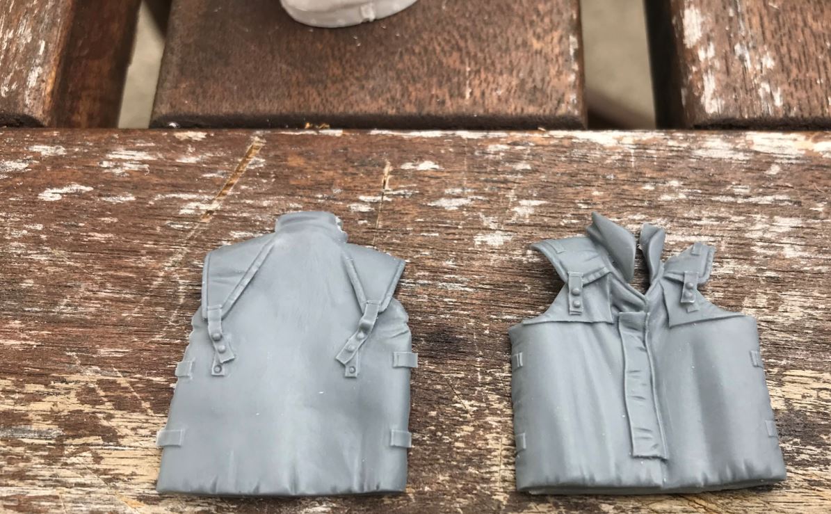 The infantryman torso with webbing need to be replaced by a simple uniform. But I really want to use that flak jacket, but its dead flat with a hand molded on the collar... there is always a solution.