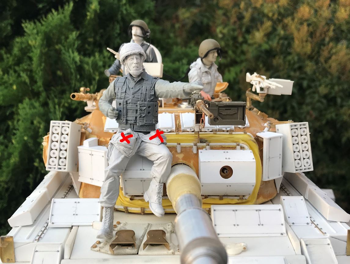 The spotter infantry rider is the AC Model head and helmet and bottom, with Verlinden Golani torso with the webbing of the time. The pockets on the legs will likely be removed, not sure yet. This figure is for static display only and will be removable. No one with his right mind would actually sit on a ERA block so I still need to find a better location for him if I decide to keep it associated to this model.