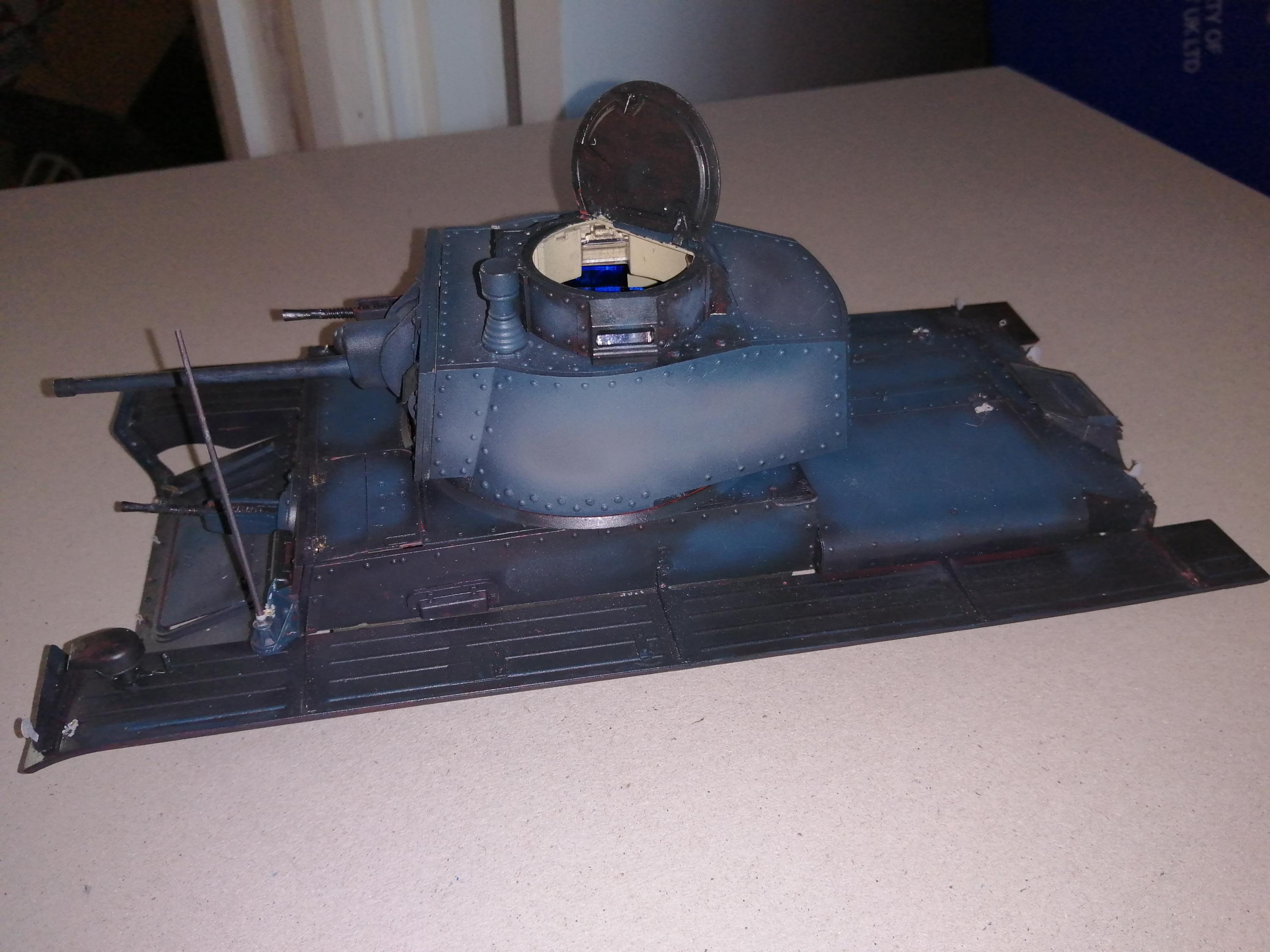 The flash has accentuated the edge of my attempts at shading.  It does not look quite so bad in real life, but I realise I have a lot to do.  I have a question though.  Once I am happy, I have a blue wash for the whole tank (It say it is for panzer grey on the jar) which I understand will help tone things down.  My question is do you brush it on or airbrush it?