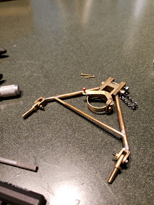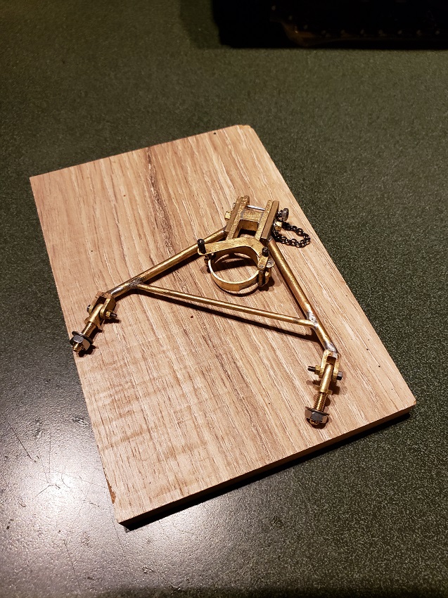 "Up Next!"...he laughingly noted... I hardly know where to begin. The piece looked great and I thought I could add a handle, drill a couple of mounting holes and install it. Sheared screw heads, broken solder points and a great deal of hours spent repairing and rebuilding the Brace finally saw it installed. More detail work will be needed to make it fit onto the armor like an original. Paint will definitely help.