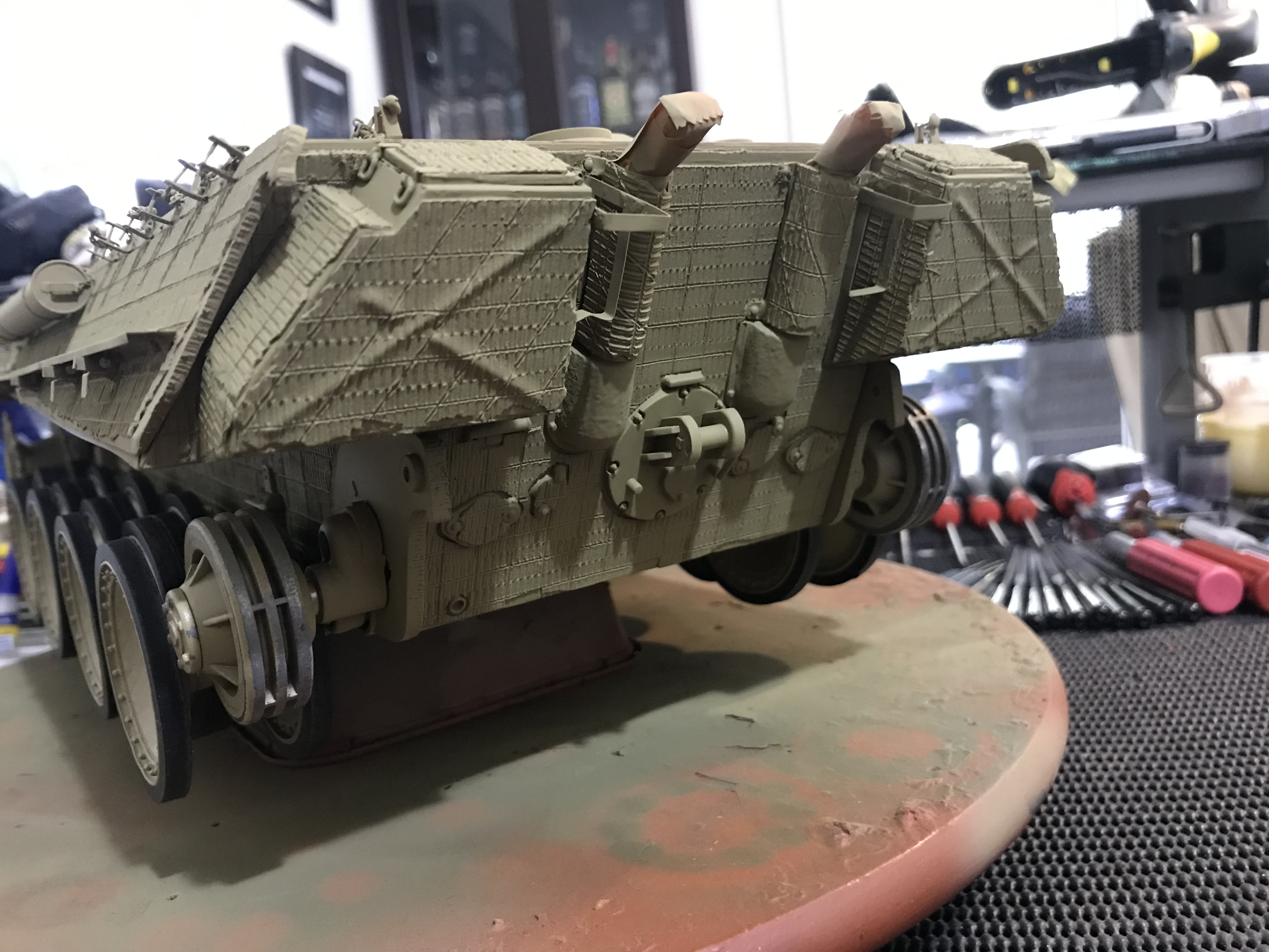 Used a blended Tamy/Mig formula that I used on F05, King Tiger and Pantherdozer so I’m confident the way it sprays and looks once dry.