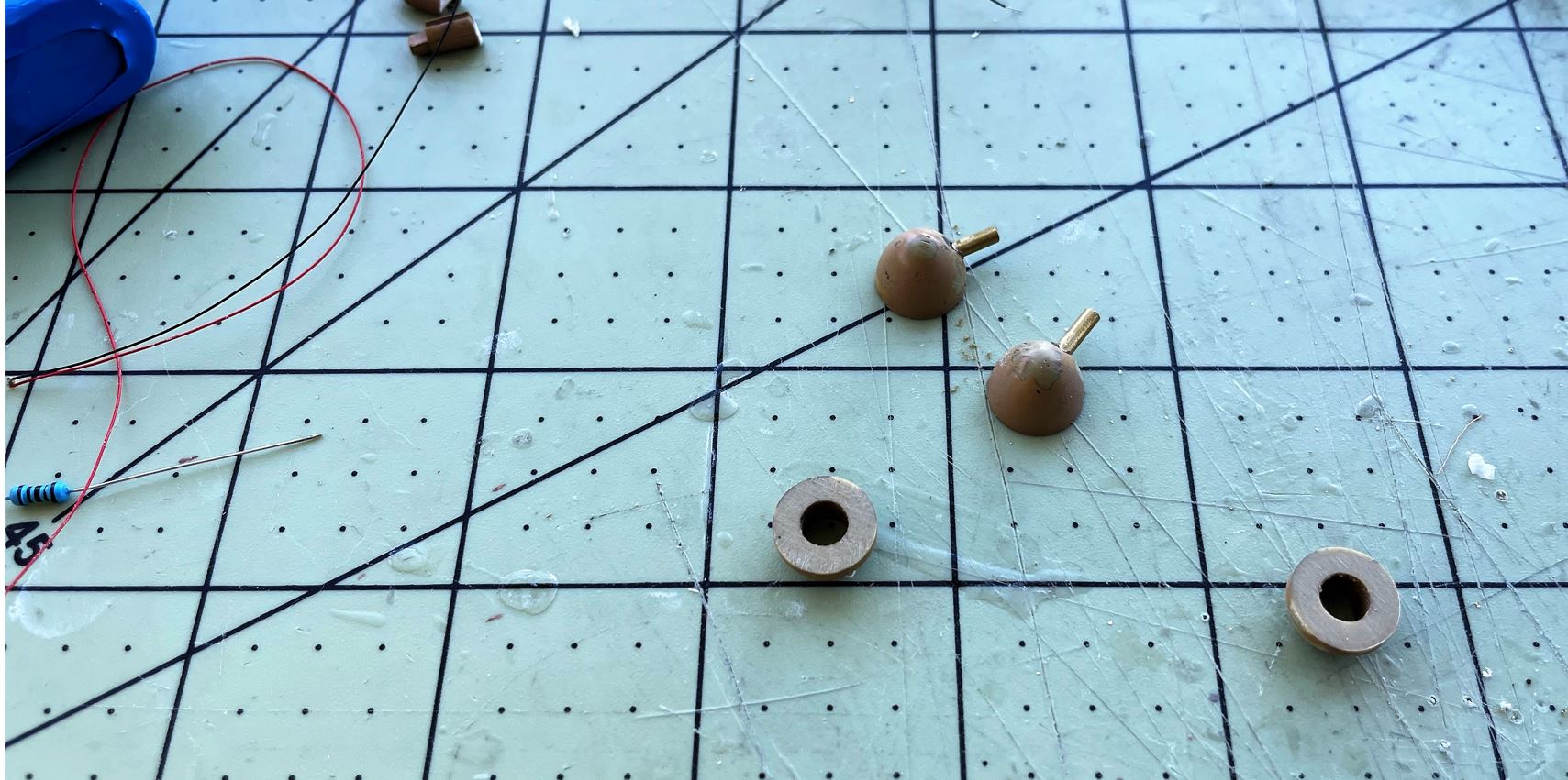 They are prepared for shape and also given new smaller LEDs with hidden wires going though a new brass tube base attachment.