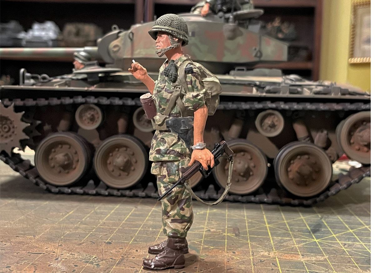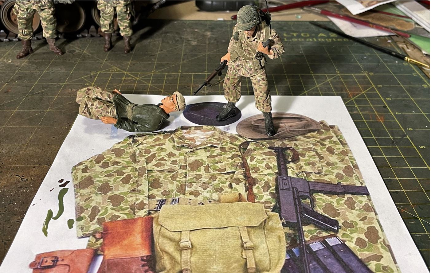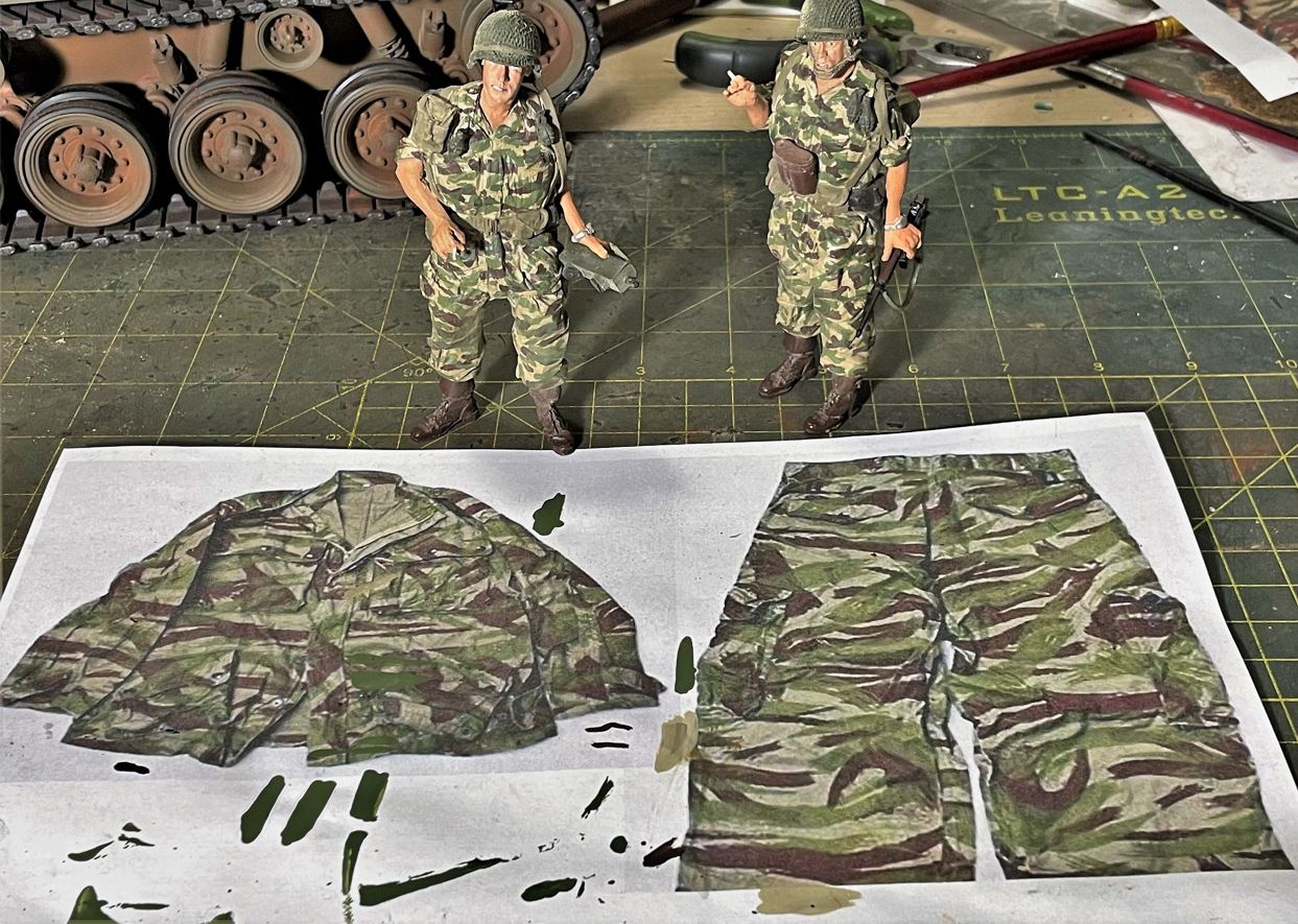 The two Paratrooper captains are given a TAP 47/52 Lizard uniform. A colored picture was printed for reference. I took out many Tamiya green and khaki colors, blended some and did multiple tests to come up with the closest match.