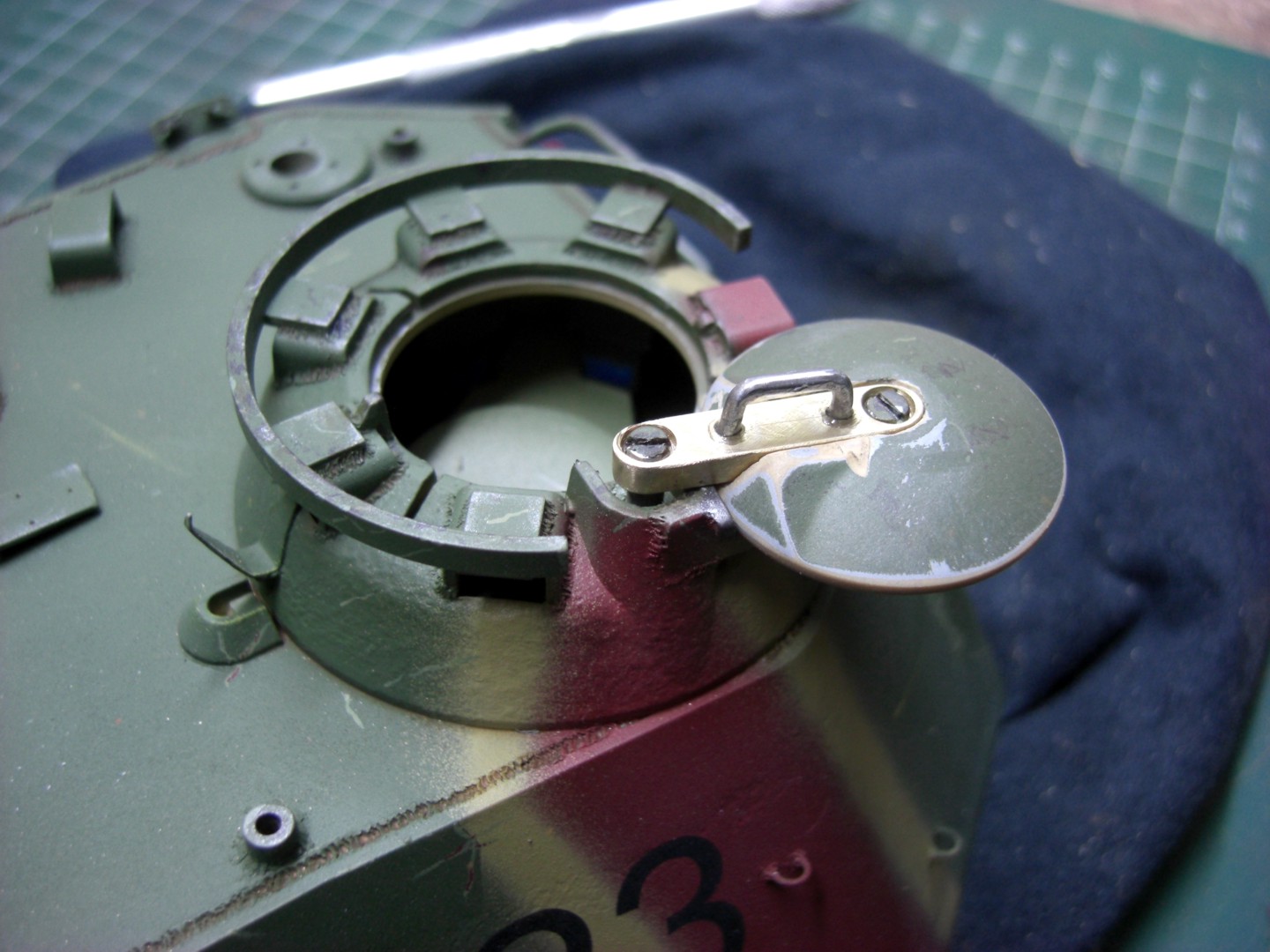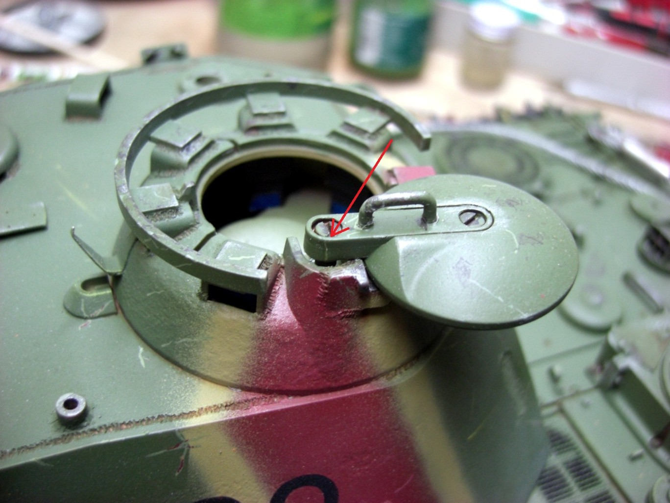 After a couple of times opening the commander's hatch I have to realize, that the original swivel arm is not strong enough. This was indicated by a little break line at the arrow.
