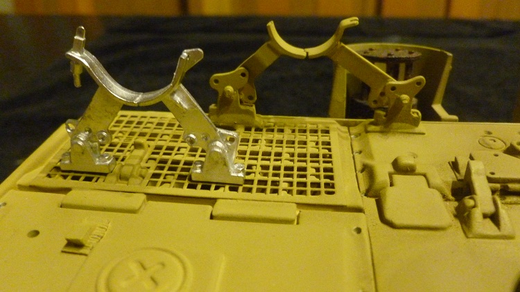 Having lowered the cupola and made sure the periscopes fit well inside It was now time to add some of the missing details to bring this up to a Mid-Production specification for this build.