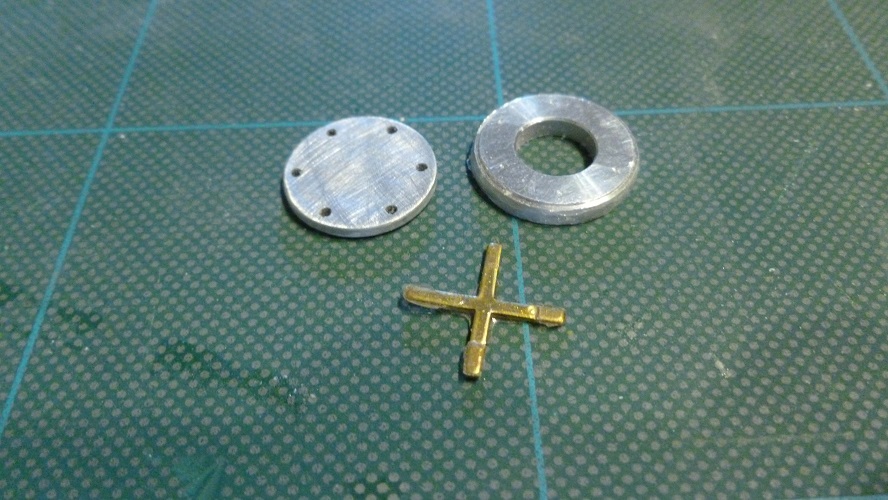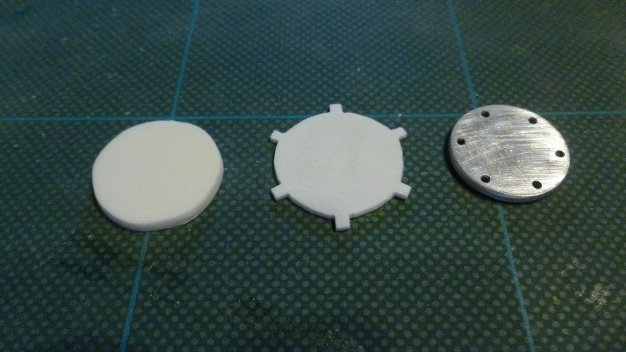 When it comes to Turret vents for the Tiger 1 we are very limited in what we can purchase. The need to replace the vent is due to the fact that in order to replicate a Mid or Late production Tiger 1 the vent for the Turret needs to be relocated from the rear right close to the Turret back wall and move it to a Central location on the Turret roof. This is an actual photograph of a Central Vent on a Late Tiger 1, as you can see it is made up from several parts, the top plate with drillings allowing access to the locating screws below, the base plate has six tabs that would have allowed a deep water wading sealing cap to be clamped in place over the vent. The ability to wade into deep water was a feature long since abandoned so the tabs were largely redundant. But the replacement options when building Mid-Late variant's are normally limited to the Taigen set that contains the Vent, Loaders additional periscope cover and the top plate of the "Nahverteidigungswaffe" close defence weapon. The only drawback is that the vent whilst similar does not copy the original closely. I decided I would use the Top of the Taigen vent and build my own base. This is what you have with the Taigen example, The top Cover is correct, I drilled the holes fully through and then prised apart the components as they are just glued together. The separating spacer should have six blades and not the four of this example. The base I felt was a little to large in diameter and too thick.