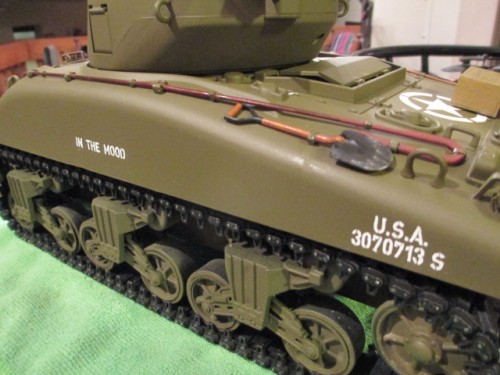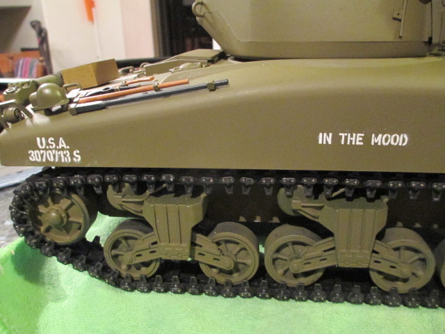 I had Pale reproduce the Mato decals at 100% for the stencils. I could have made 'In The Mood' larger but this matches what is visible on the tank in that one action shot of Pool and his beloved Sherman. Your version is, of course, much more exciting to look at. *chuckles*