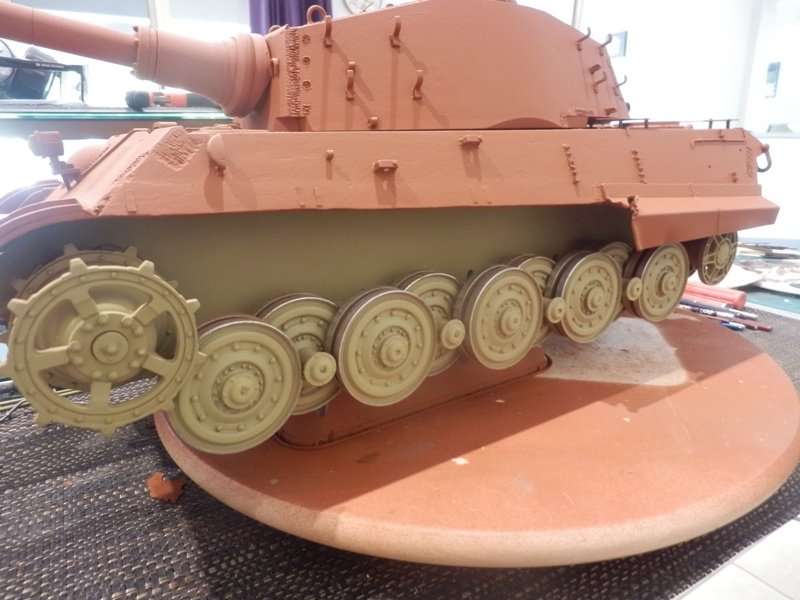 The dunkelgelb paint in the lower hull/sponson area was right, but once the wheels were dry fitted, things didnt look right.