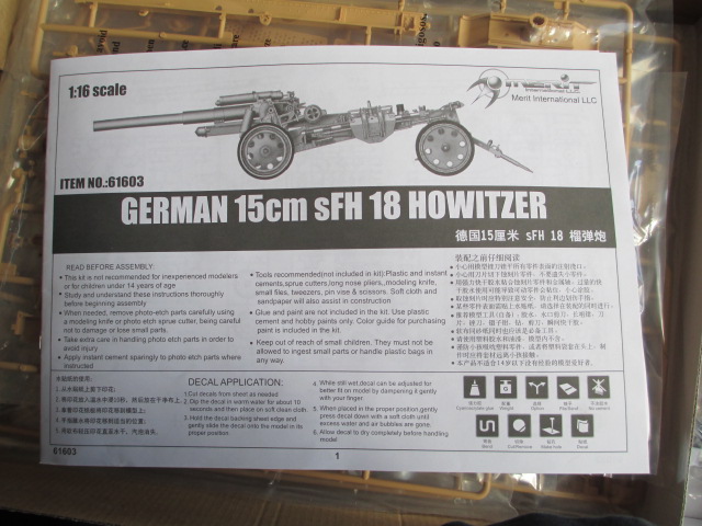 Nice trick, Max! Very nicely done MG. ;o) The USPS delivered today and the Merit 15cm came in that I had been awaiting. The company makes this gun in a pre-built version as well but that is without the Limber so I had ordered the kit version and it is really nice and complete. This will be a fun build and look great out in the tank park later on this year. Pics: