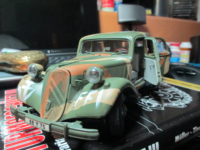 Do you remember, Sir, earlier last year when I got that Parisian plated Citroen sedan and outfitted it with a platoon of Wehrmacht heavy weapons guys? I found out that the year of make for that car is in the 50's. ( looks great so I am not going to complain ;o) Supposedly, this Citroen Traction 11 Avant represents an actual 1938 version of the car. We will see once it arrives and I can compare it to the earlier car.